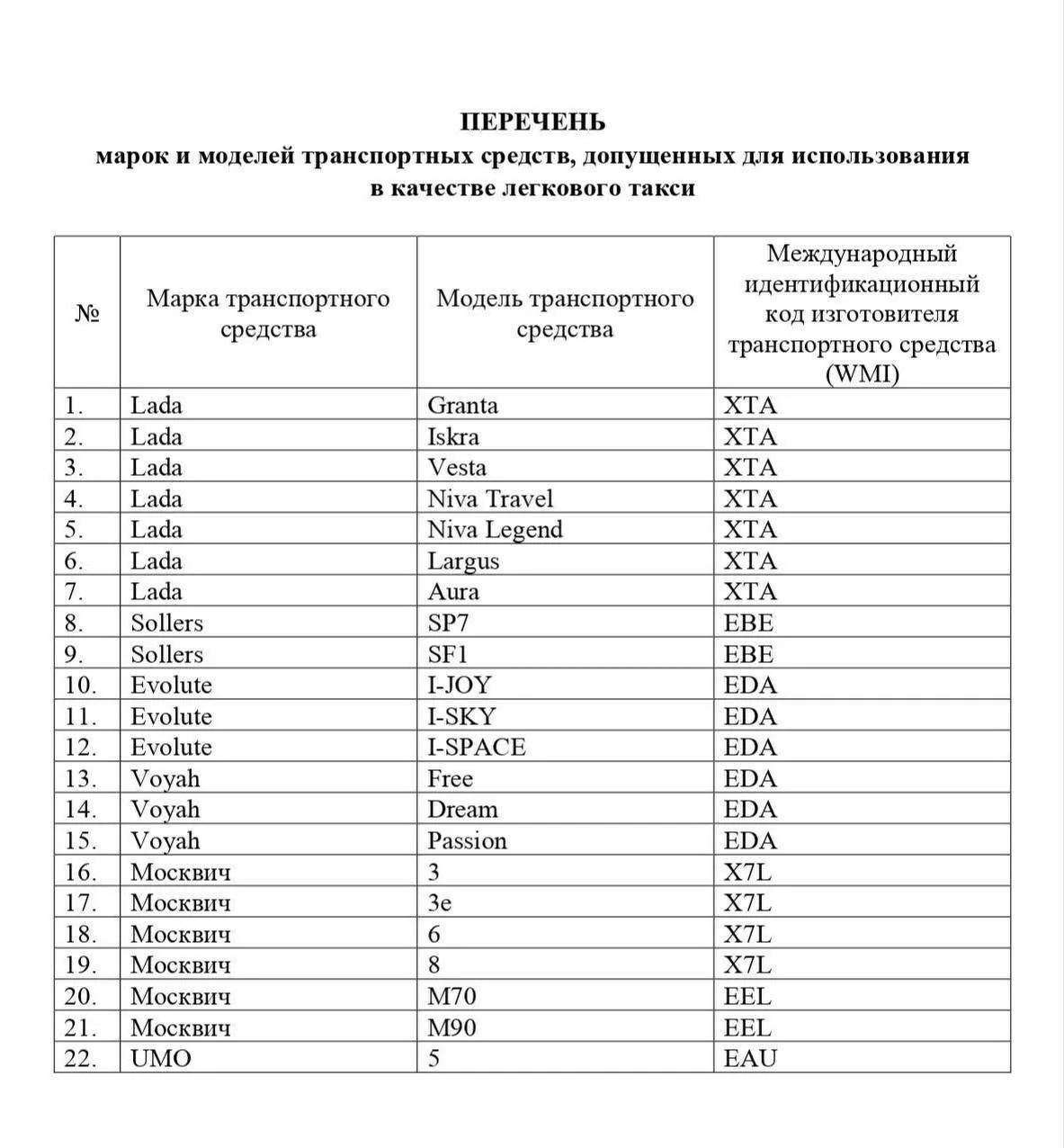 Финальный список машин, на которых можно будет работать в такси, опубликовал Минпромторг: 13 из 22 моделей в списке — «Москвич» и Lada.