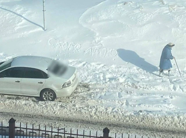 ♥️ Бабуля написала на снегу самое актуальное напоминание.