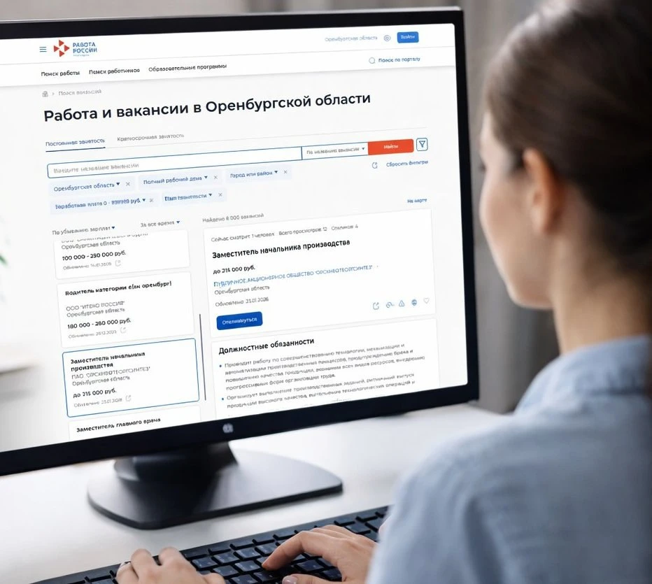 В правом верхнем углу сайта или в разделе поиска найдите опцию выбора региона. Укажите "Оренбургская область". В строке поиска введите название желаемой вакансии.
