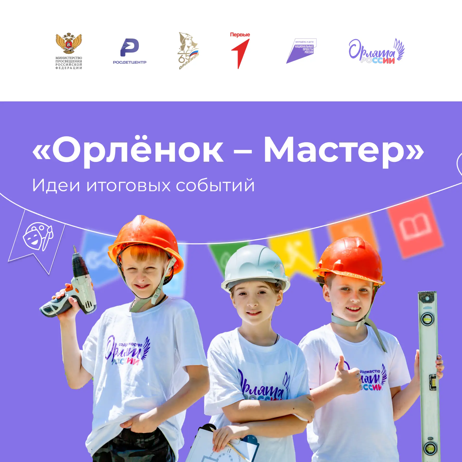 ✍🏻 Подробнее о том, как будет реализован подобный формат, вы можете узнать из установочного вебинара, а идеи для итоговых событий трека «Орлёнок – Мастер» смотрите в нашем сообществе в ВКонтакте или в методическом пособии на сайте программы – vk.cc/cQyJyL.