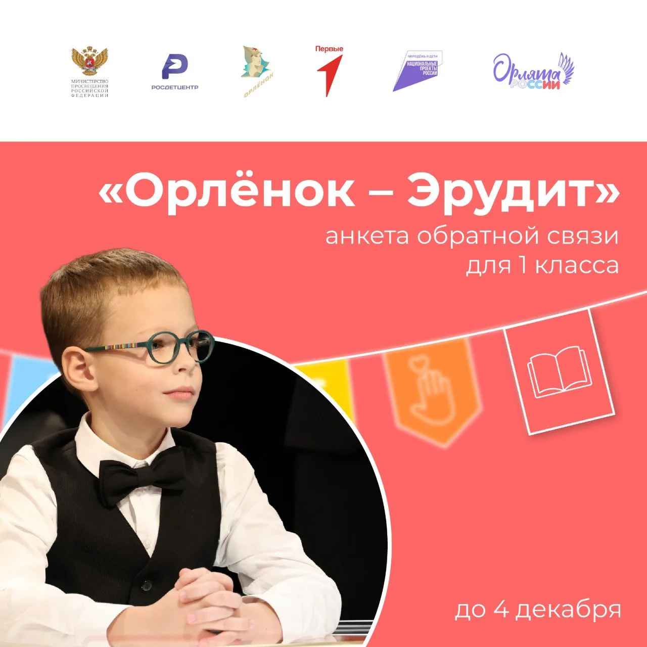➡️ С 28 ноября по 4 декабря откроется доступ к заполнению анкет обратной связи по треку «Орлёнок – Эрудит» для 1-х классов.