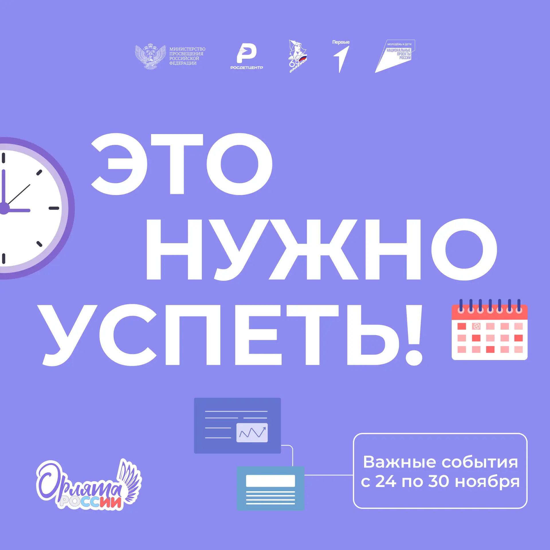 Отправляемся в последнюю неделю ноября вместе с программой «Орлята России». Вот, что важно не пропустить на этой неделе: