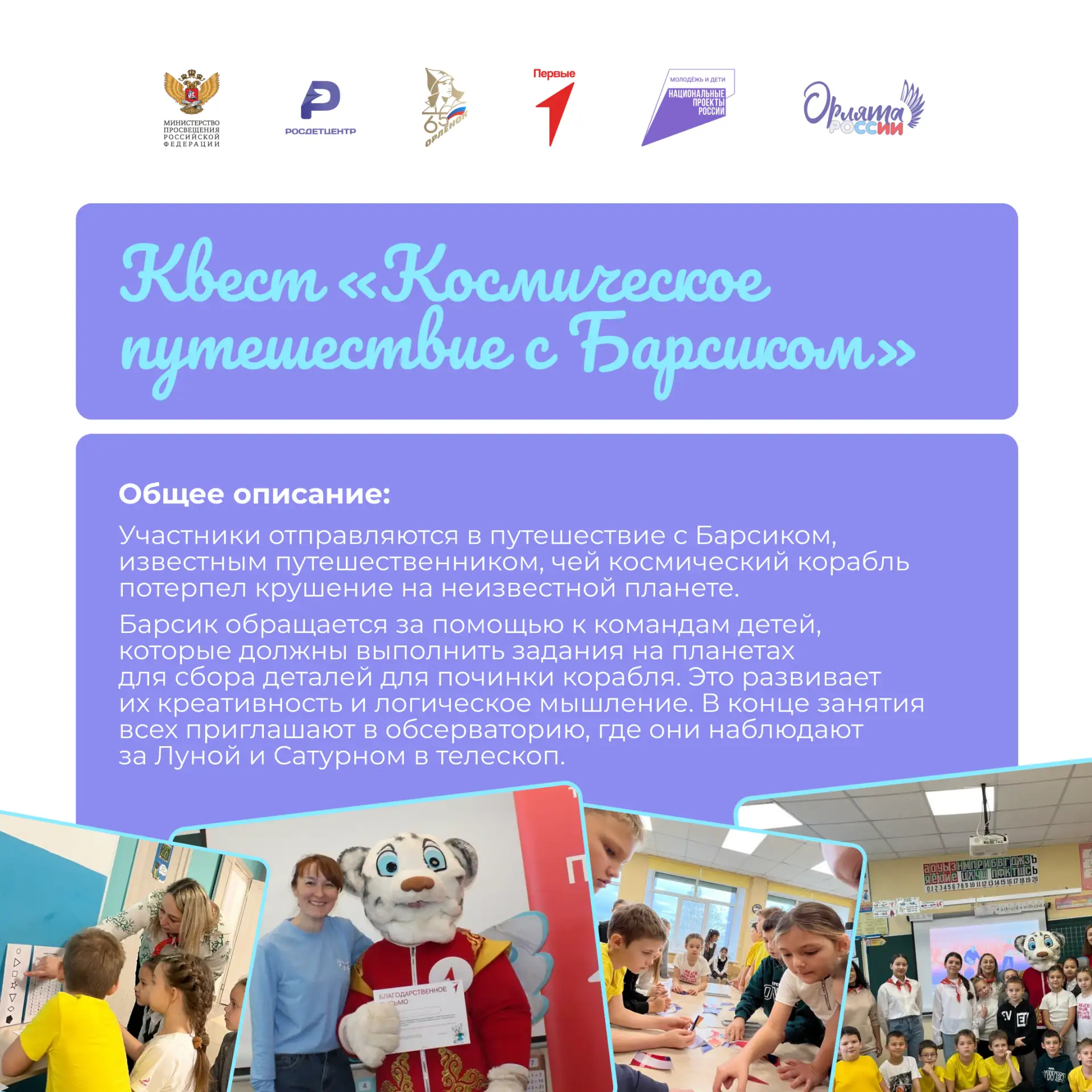➡️ Продолжается реализация трека «Орлёнок – Эрудит» для Орлят 2–4-х классов.