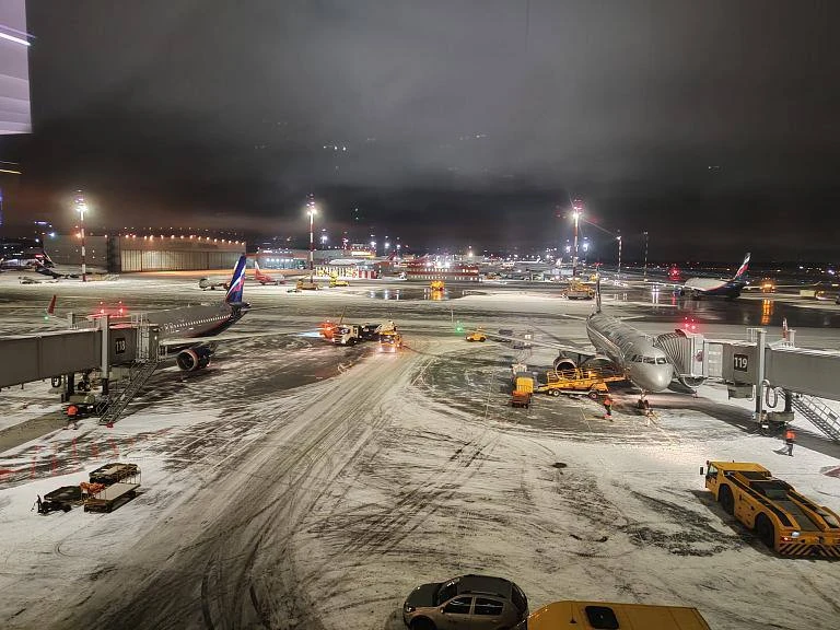 ✈️В аэропортах столицы из-за снегопада уже задержаны более 70 рейсов.
