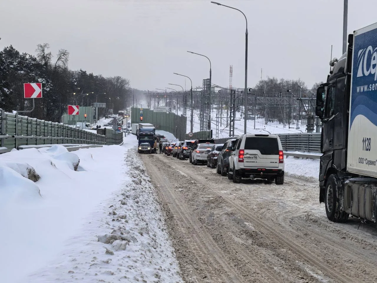 Снегопад в столичном регионе ослаб, а последствия остались. Как рассказали жители ЖК «Томилино Парк» в Люберцах, дороги в их районе превратились в однополосные. Остановки общественного транспорта заняты частниками, маршруткам и автобусам порой негде остановиться. В итоге пассажиров высаживают вторым рядом на проезжей части. Очередь утром в понедельник достигла около сотни человек.