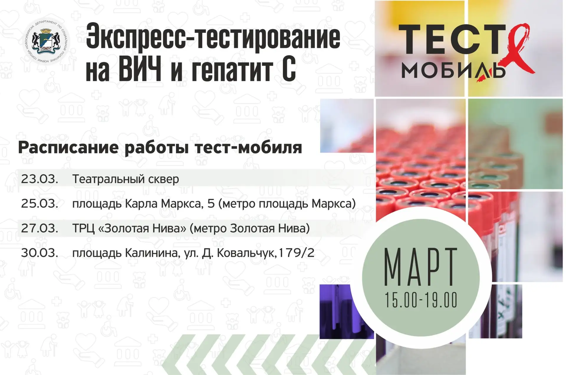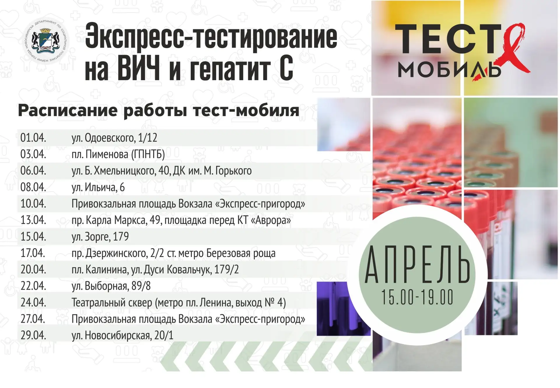 Бесплатное тестирование всех групп населения проводится на базе мобильной лечебно-профилактической клиники (МЛПК) с использованием экспресс-тестов на ВИЧ-инфекцию и гепатит С и получением результата в течение 15 минут.