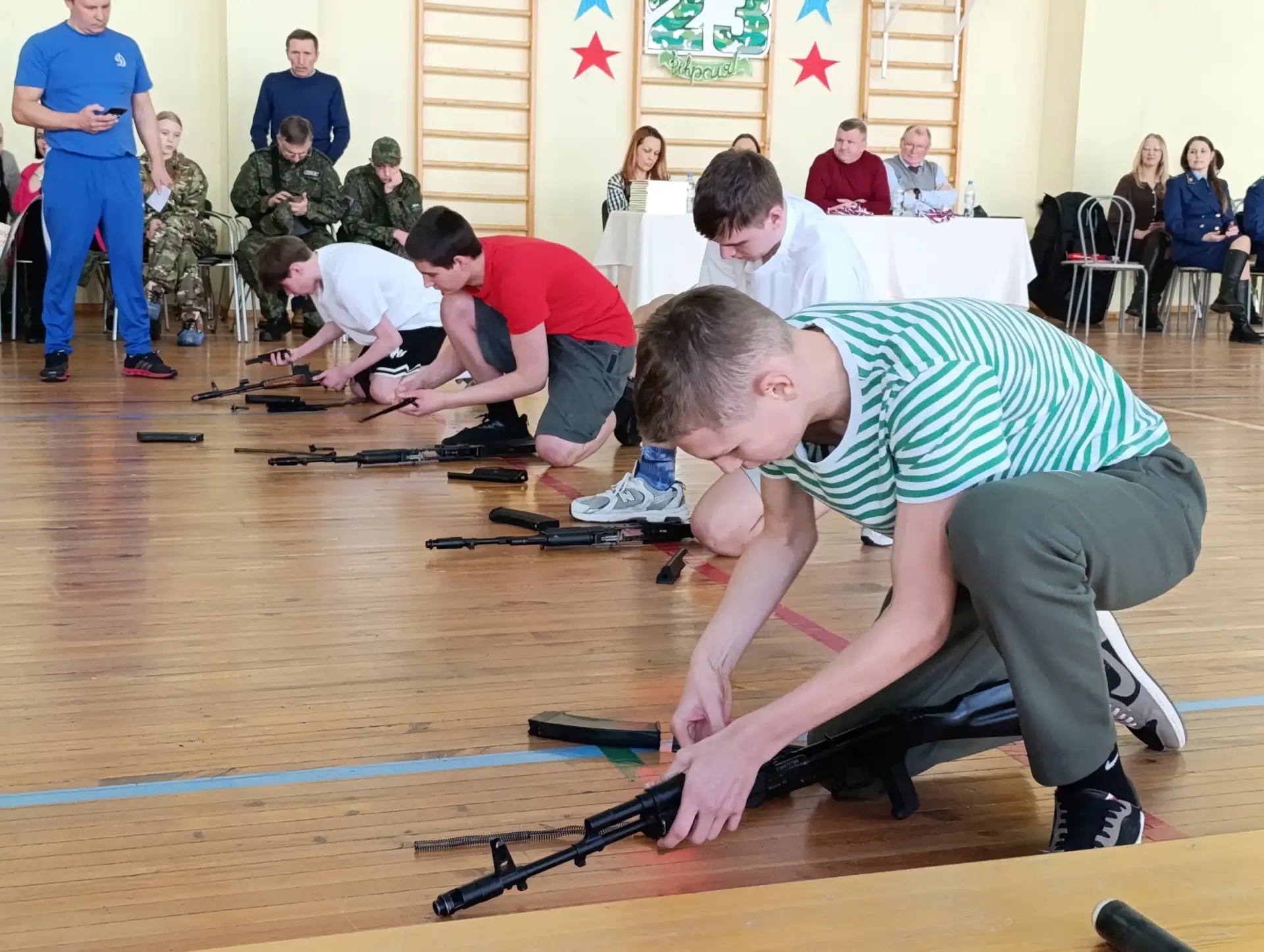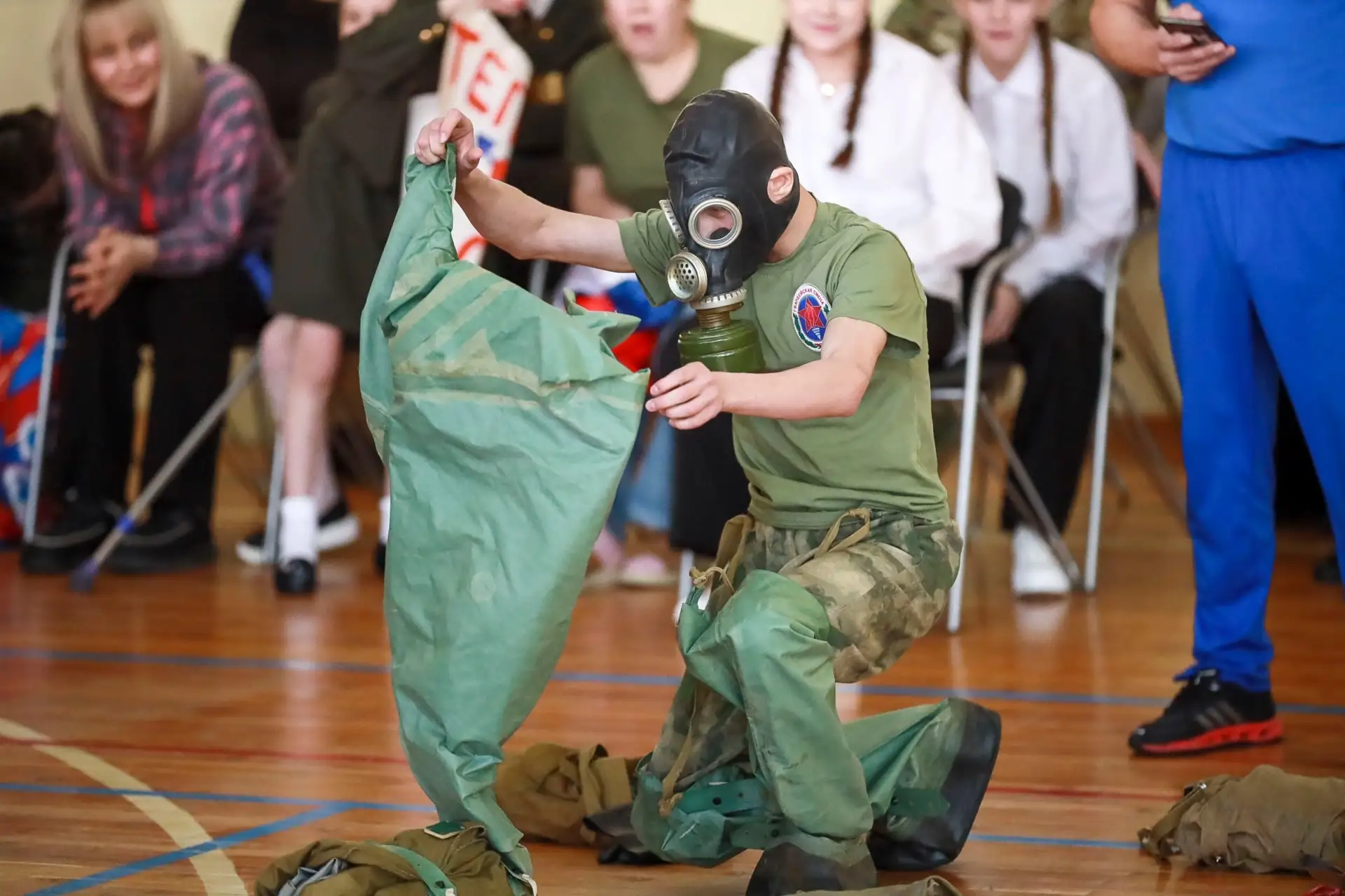 После разминки конкурсантам предстояло продемонстрировать навыки строевой подготовки, на скорость пройти полосу препятствий, разобрать и собрать оружие и облачиться в костюм РХБЗ.