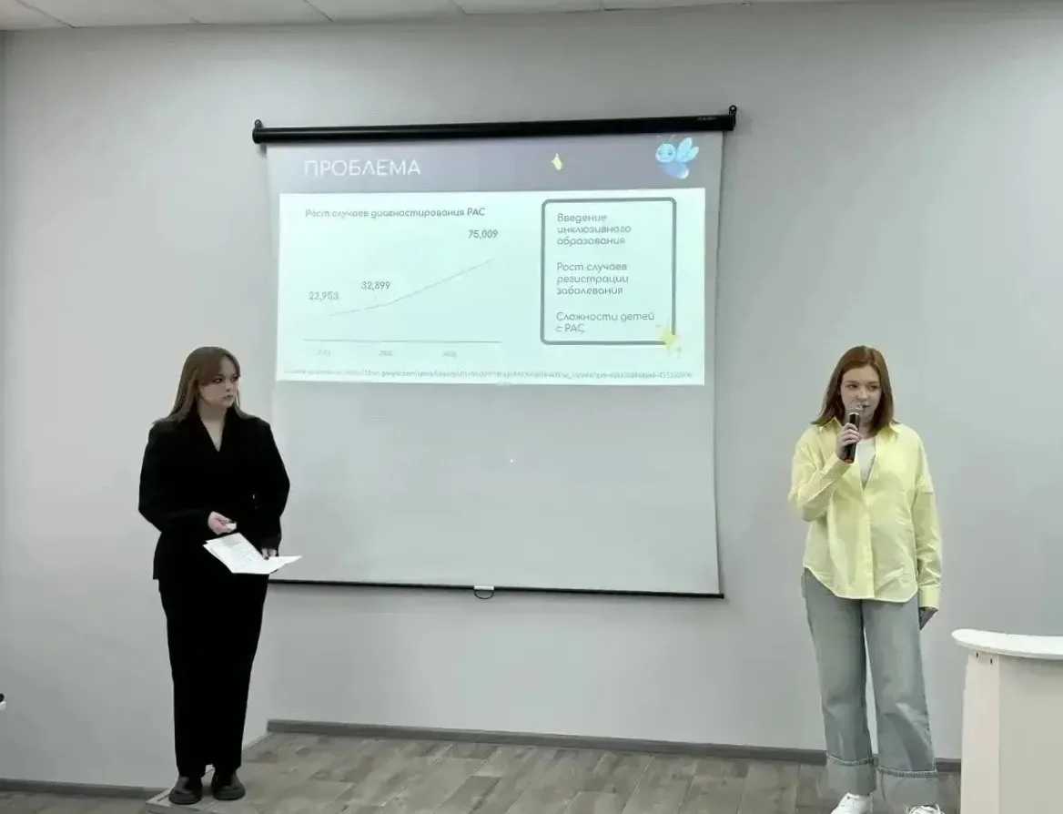 На защите проектов ребята представили свои разработки. Одним из ярких примеров стал проект Мобильного приложения для адаптации детей с РАС «Светлячок», которое ориентировано на специалистов социальной сферы, а также образования и здравоохранения, родителей и индивидуальных психологов. Оно представляет собой мобильную платформу с адаптивными играми, направленными на обучение детей повседневным действиям. Ребенок проходит уровни, имитирующие реальные жизненные сценарии, такие как поход в класс. Обучающие процессы повторяются многократно, помогая ребенку запомнить осознанный алгоритм действий.