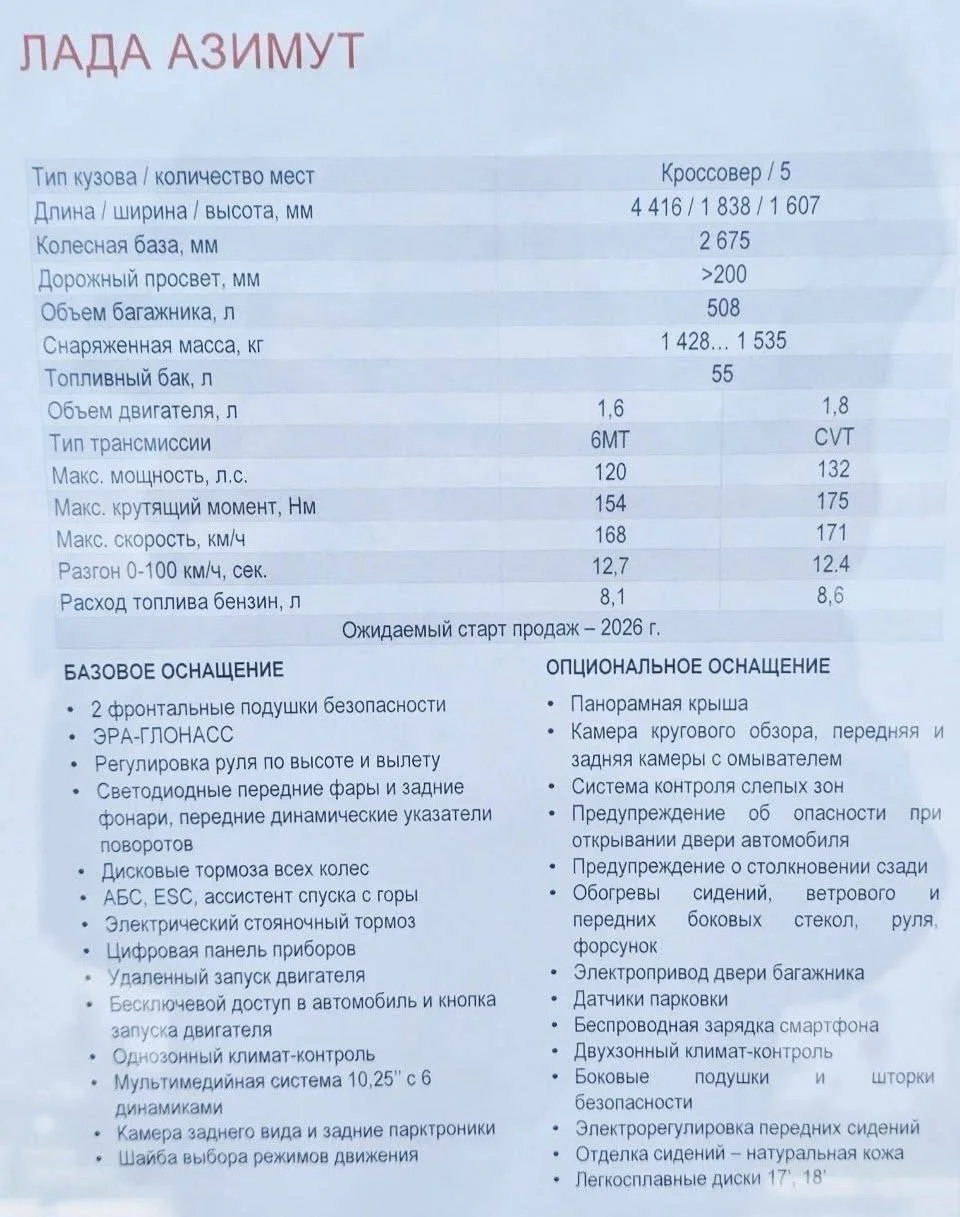Новый LADA Azimut за 1,9–2,6 млн рублей заметили в Москве — показан прототип в базовой комплектации.