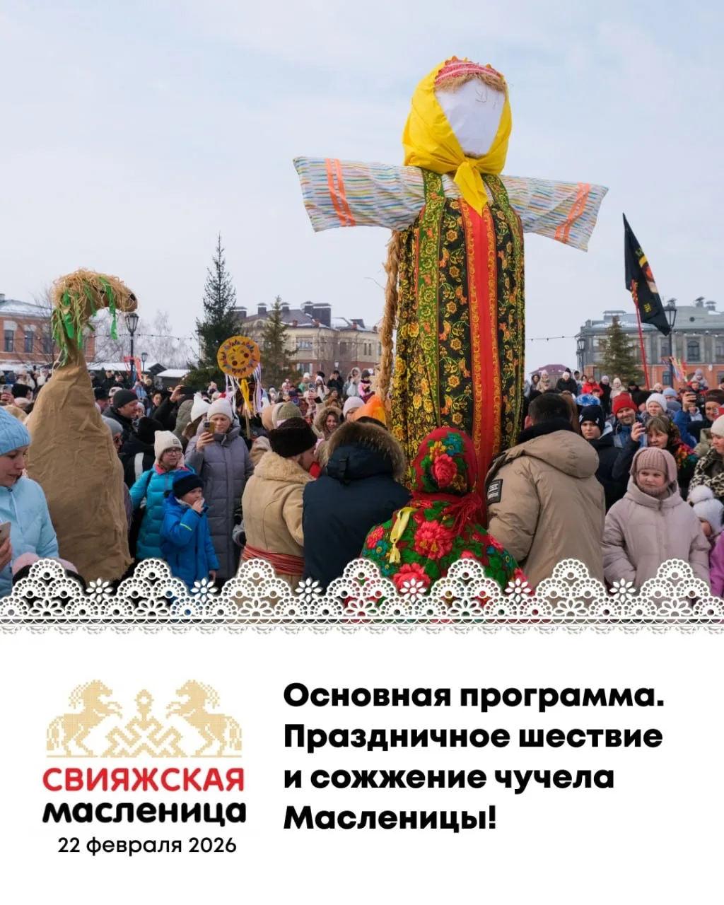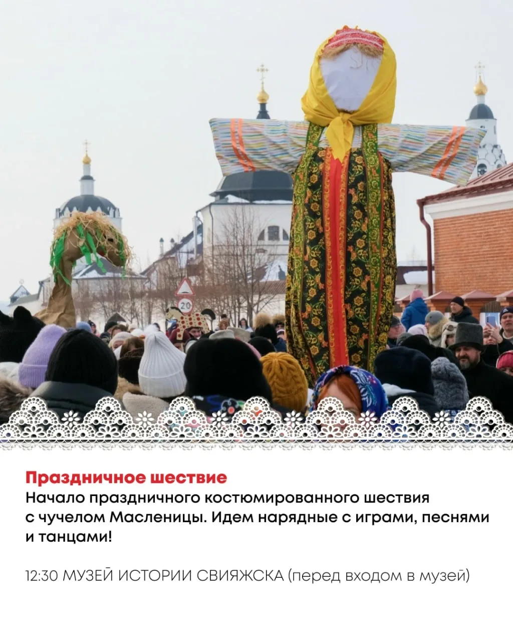 22 февраля по улицам Свияжска пройдёт масленичное шествие — с песнями, хороводами и традициями.