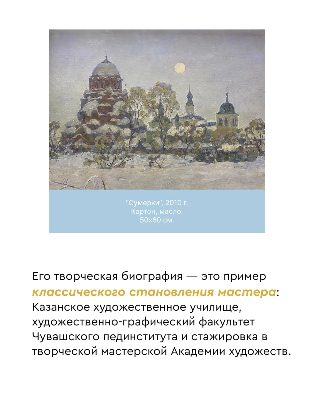 27 марта в Выставочном зале Музея истории Свияжска откроется новая экспозиция. Мы продолжаем знакомить вас с династией московских художников Бабиных. Вслед за выставкой Валерия Бабина, прошедшей в Свияжске летом 2025 года, представим творчество его брата — Александра, мастера лирического пейзажа.