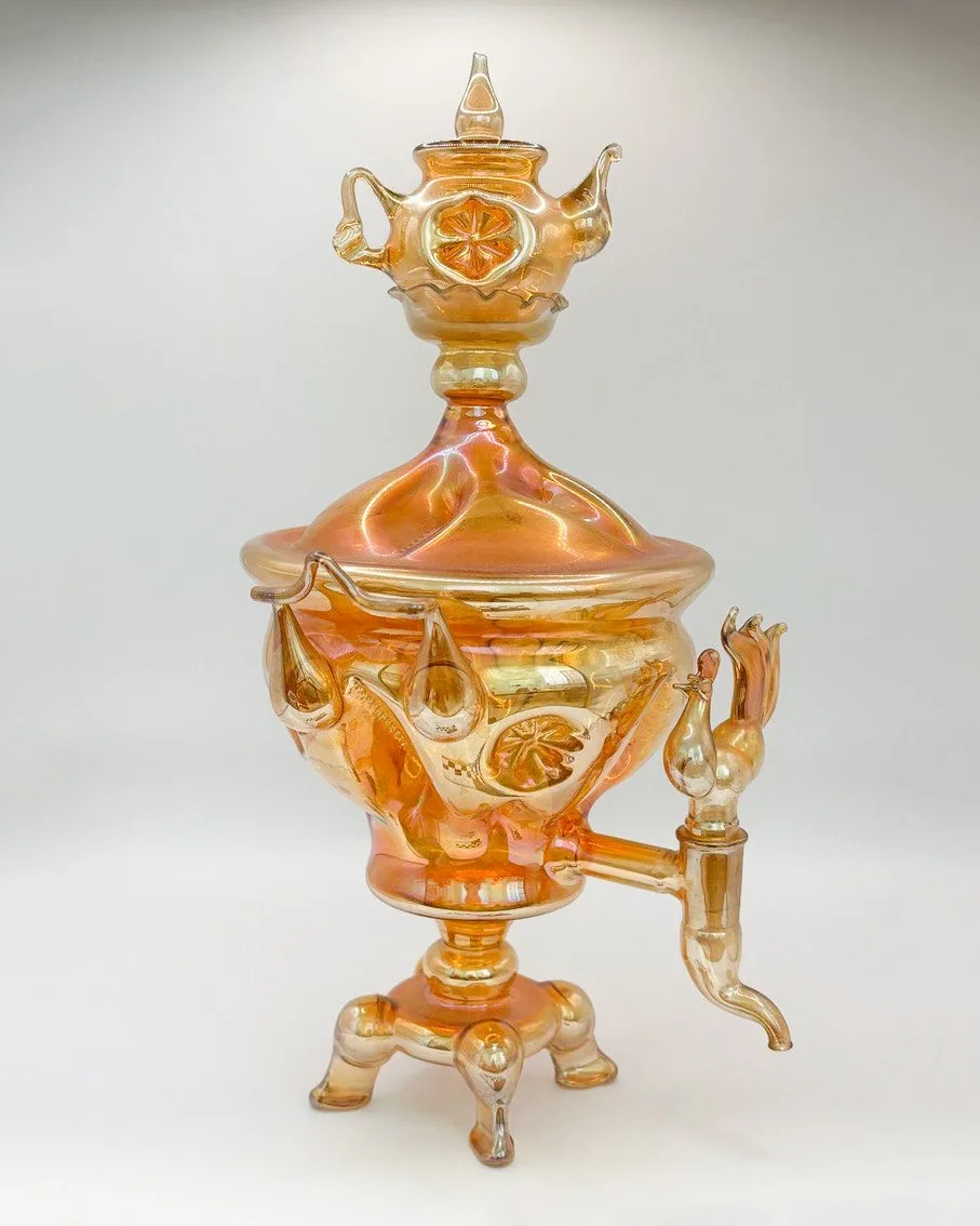 На этот раз речь пойдет о декоративном стеклянном самоваре — необычном предмете, раскрывающем историю русской чайной традиции. Вы узнаете, как самовар стал не только символом гостеприимства и уюта, но и сувениром, а также познакомитесь с историей Васильевского стекольного завода и уникальным экспонатом из коллекции музея.