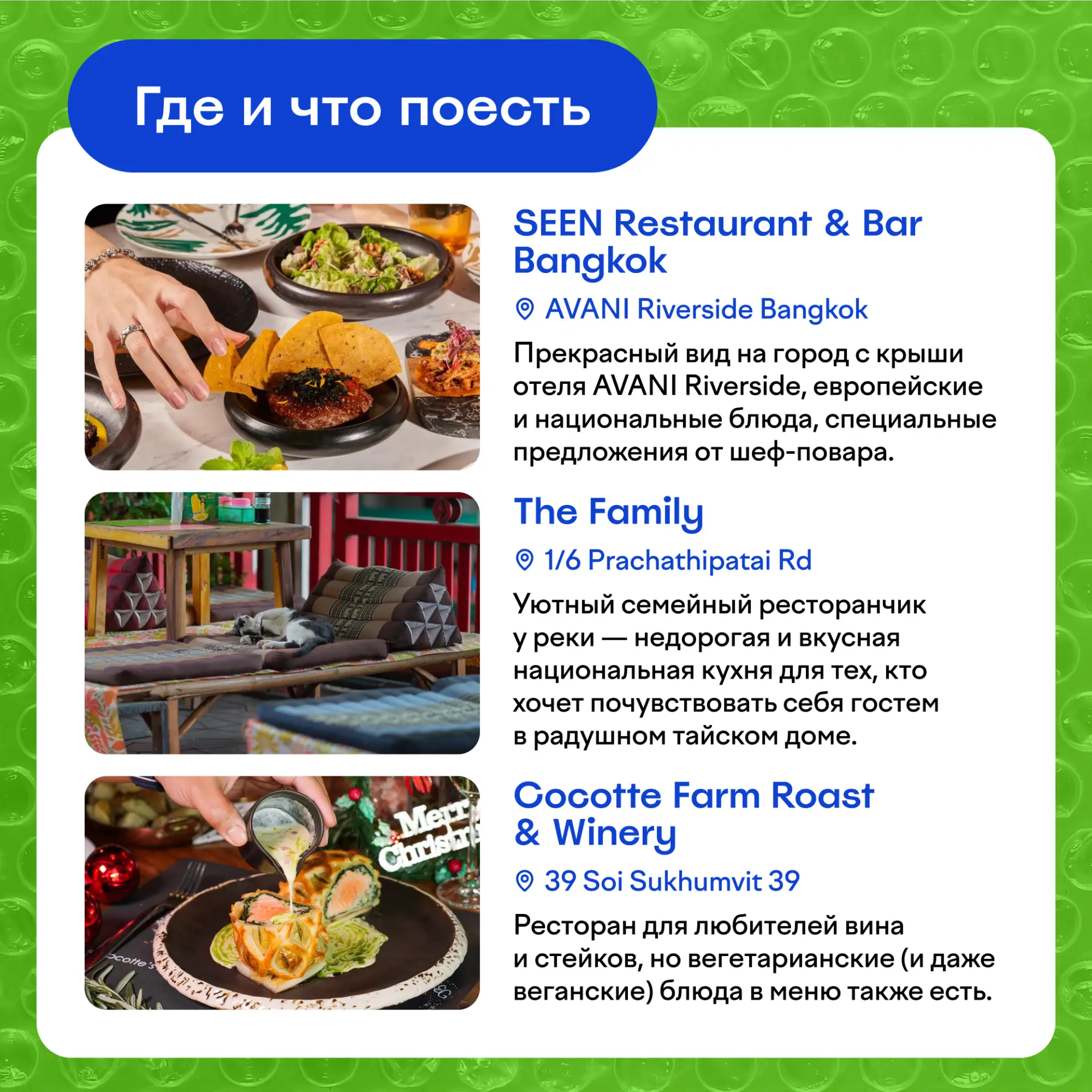 Роскошные храмы, вкусная уличная еда, шумные бары — чего только нет в этом восточном мегаполисе. Едем преисполняться бесконечным вечным и идти к реке (в данном случае к реке Чаупхраи).