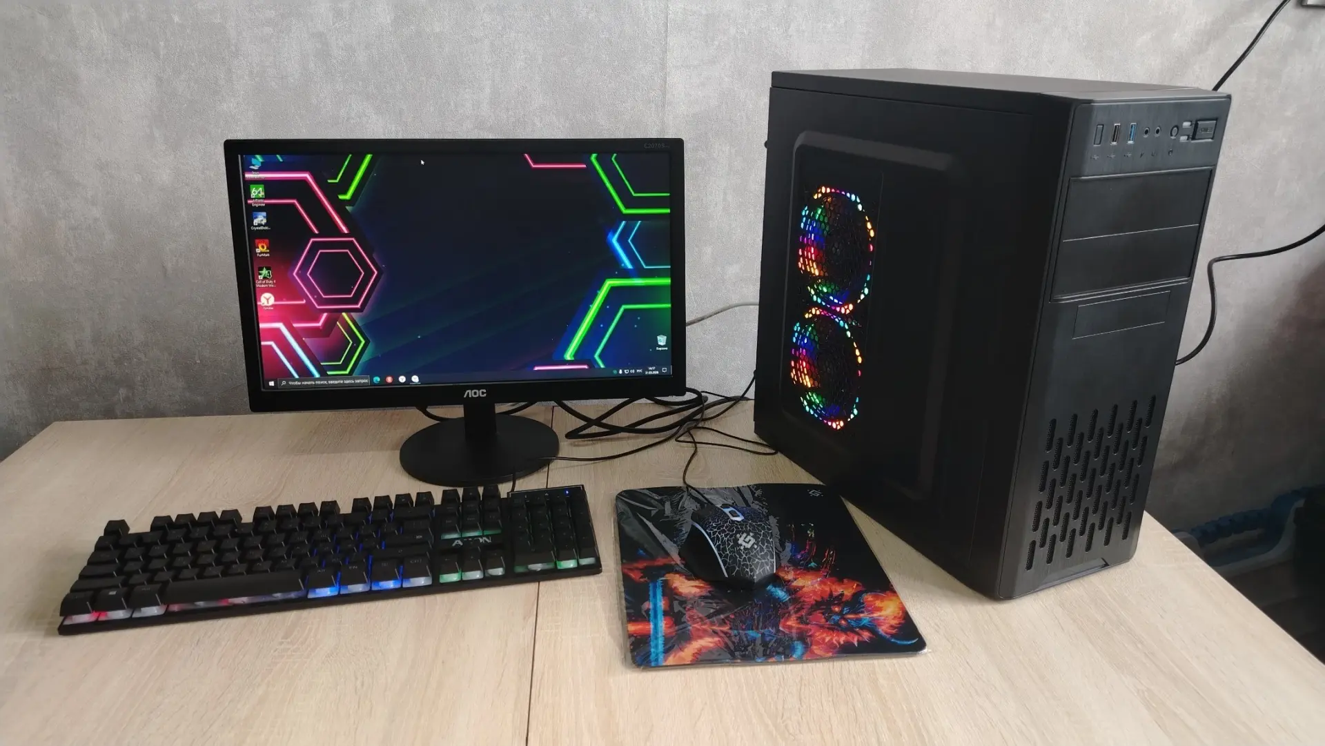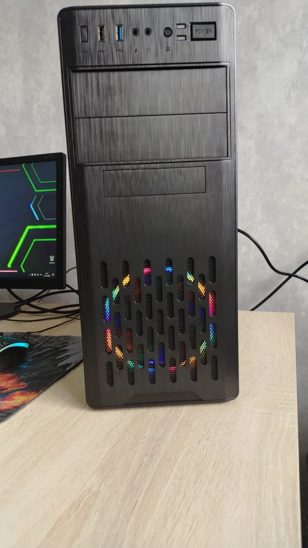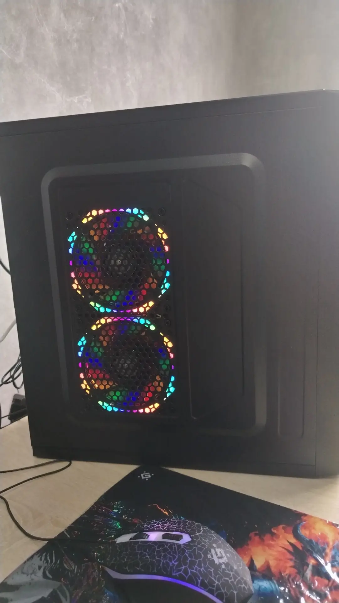 Новый корпус (есть коробка) с куллерами rgb (подсветка вентиляторов).