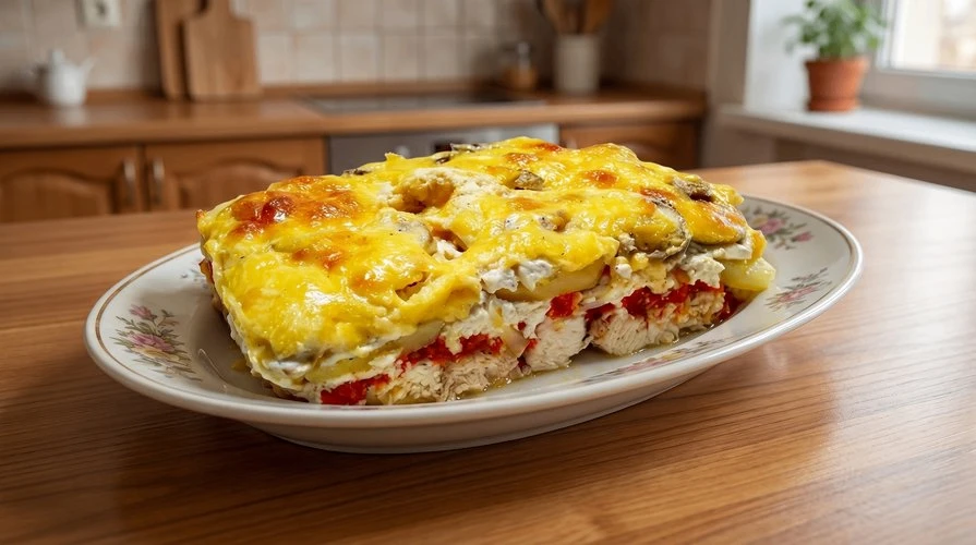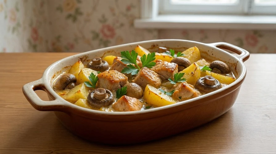 — Сочное, ароматное рагу из индейки с картофелем, грибами и нежной сметанной заливкой.