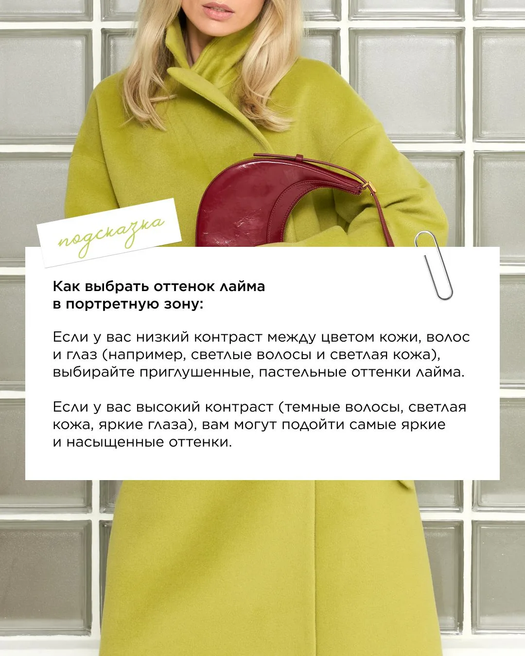 Вместе с Марианной мы создали подборку образов, которые доказывают, что лаймовый гардероб может быть не только ярким, но и стильным.