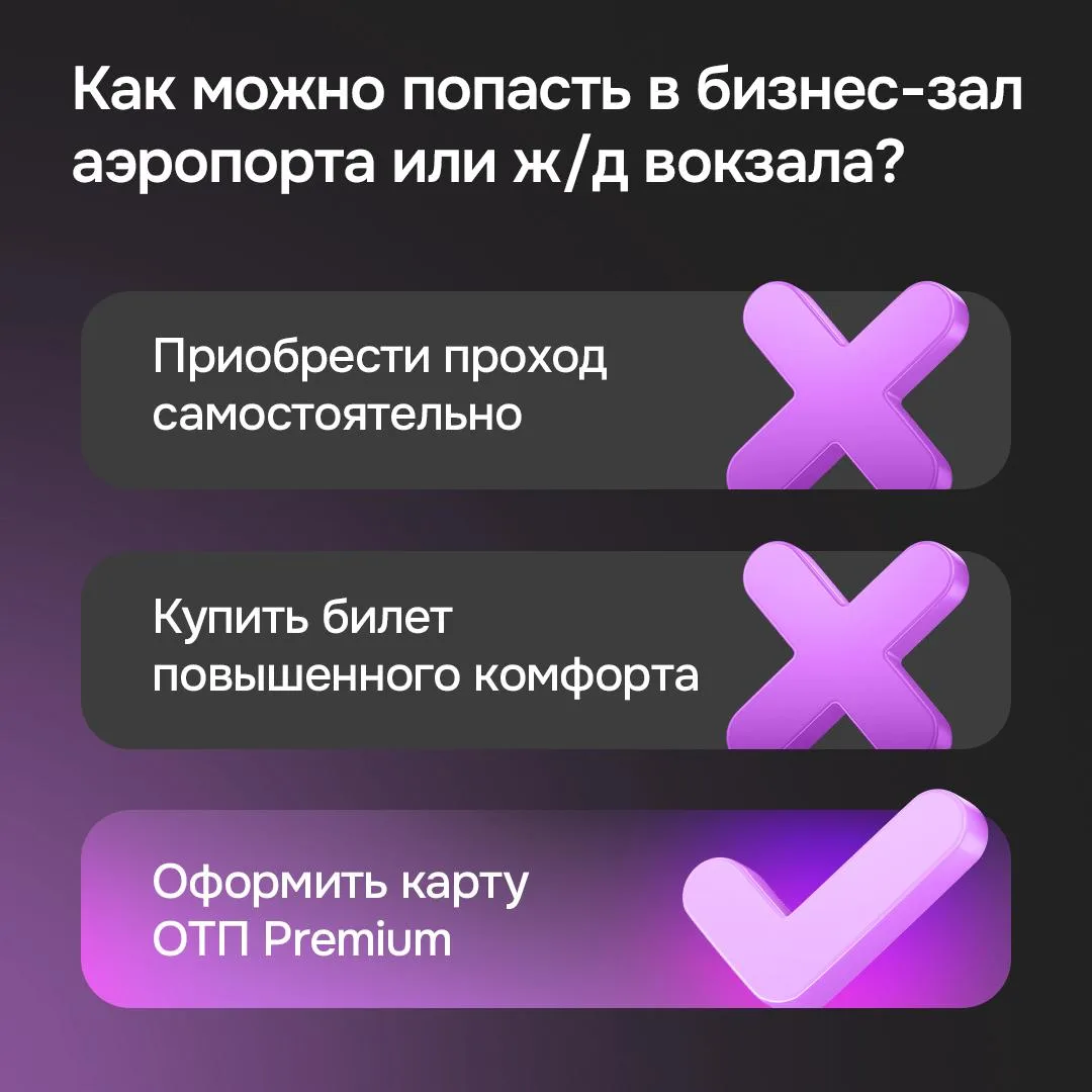 Проходите в бизнес-залы аэропортов и ж/д вокзалов бесплатно с ОТП Premium