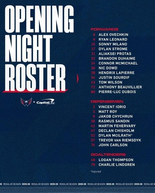 ⚡️ ОФИЦИАЛЬНО: капитан «Вашингтона» Александр Овечкин вошел в состав на первый матч нового сезона НХЛ!