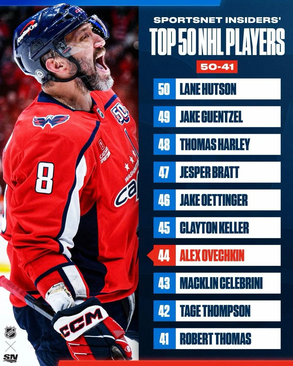 ❤️ Александр Овечкин — в списке 50 лучших действующих игроков НХЛ по версии SportsNet
