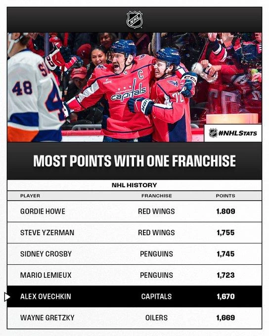 🇷🇺 Александр Овечкин вышел на чистое 18 место по количеству матчей в регулярных сезонах НХЛ 🌍