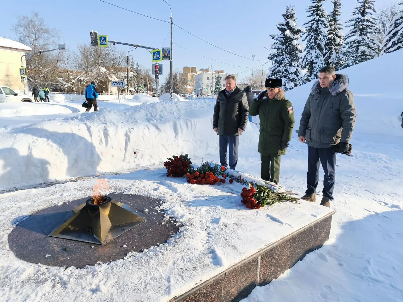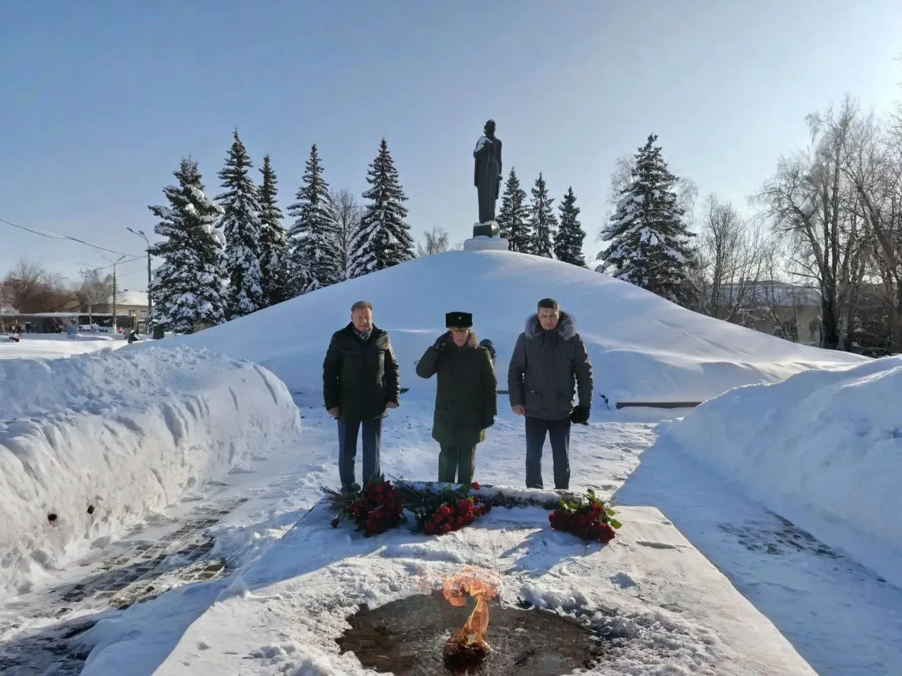 2 февраля — памятная дата для нашей страны — День воинской славы — День разгрома советскими войсками немецко-фашистских войск в Сталинградской битве (1943 год), именно поэтому встреча началась с возложения цветов к Вечному огню в знак памяти и уважения к подвигам наших дедов и прадедов.