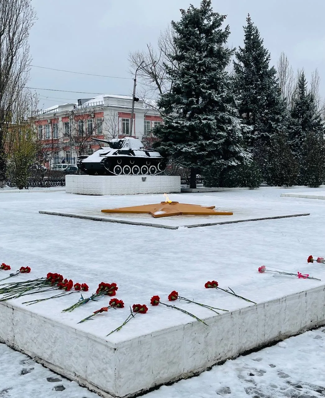 🥀 Сегодня, в День Героев Отечества, возложили цветы к Вечному огню на площади Труда и почтили память погибших минутой молчания, — фото публикует ТГ-канал главы администрации Александра Камоцкого.