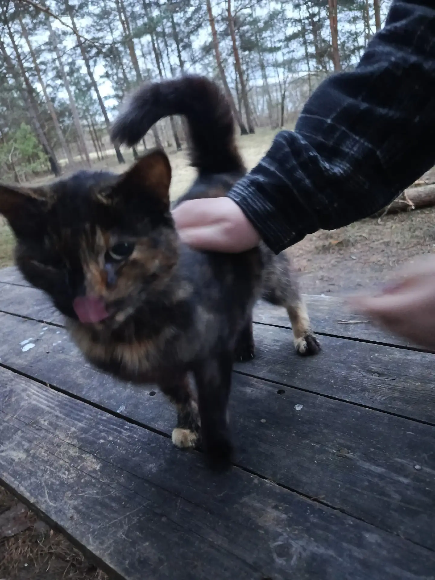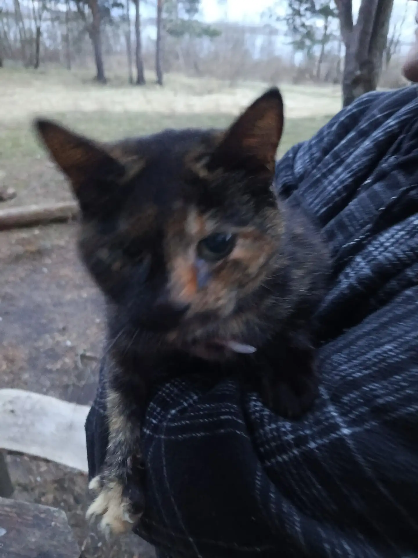 Может кто знает чья кошечка? Уже несколько дней обитает в мештоке в лесу около озера. Может кто потерял.