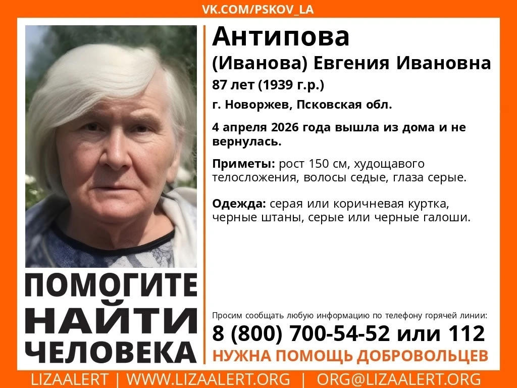 Спасибо всем кто откликнулся на зов помощи в поиске Антиповой Евгении Ивановны. К сожалению нашли умершей.