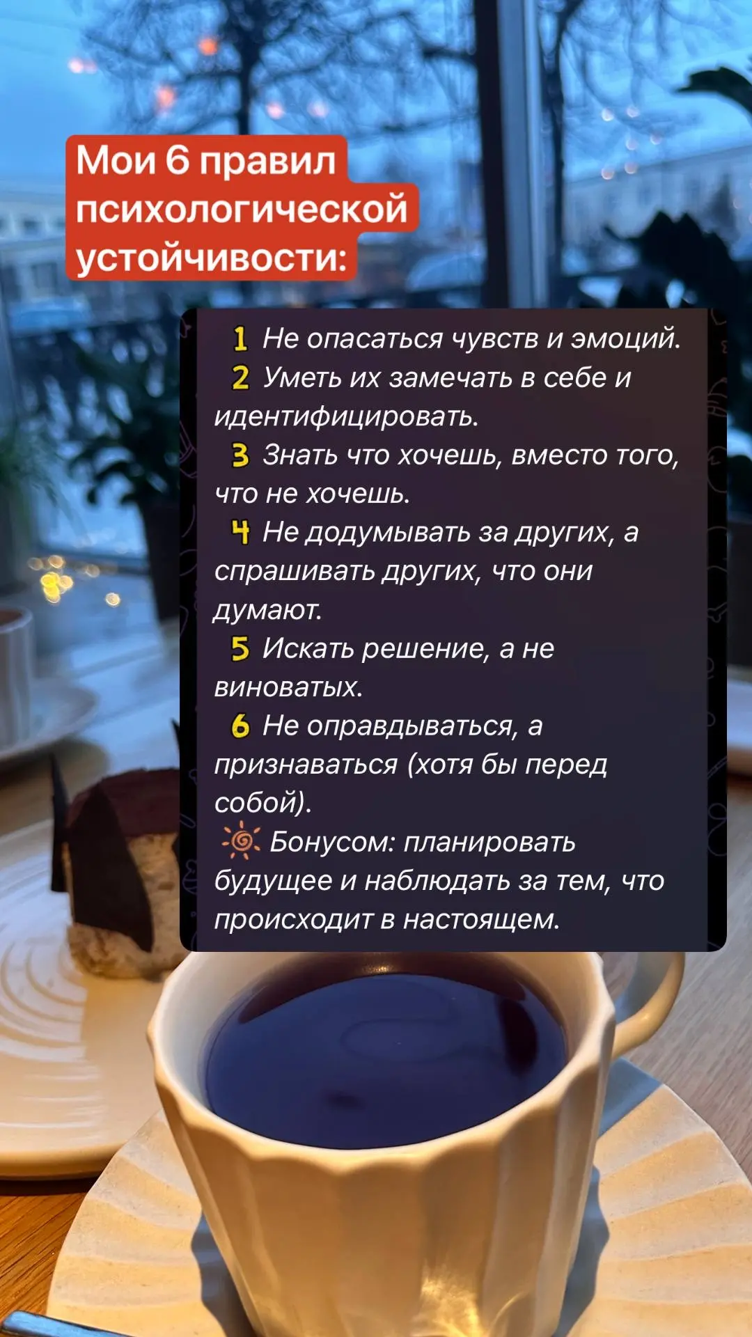 Свобода начинается с идеи: «Мое настроение — это моя ответственность. Даже если вокруг хаос, я могу выбрать, как действовать». Это не про то, чтобы стать бесчувственным, а про то, чтобы вернуть себе контроль над собой и своими решениями.