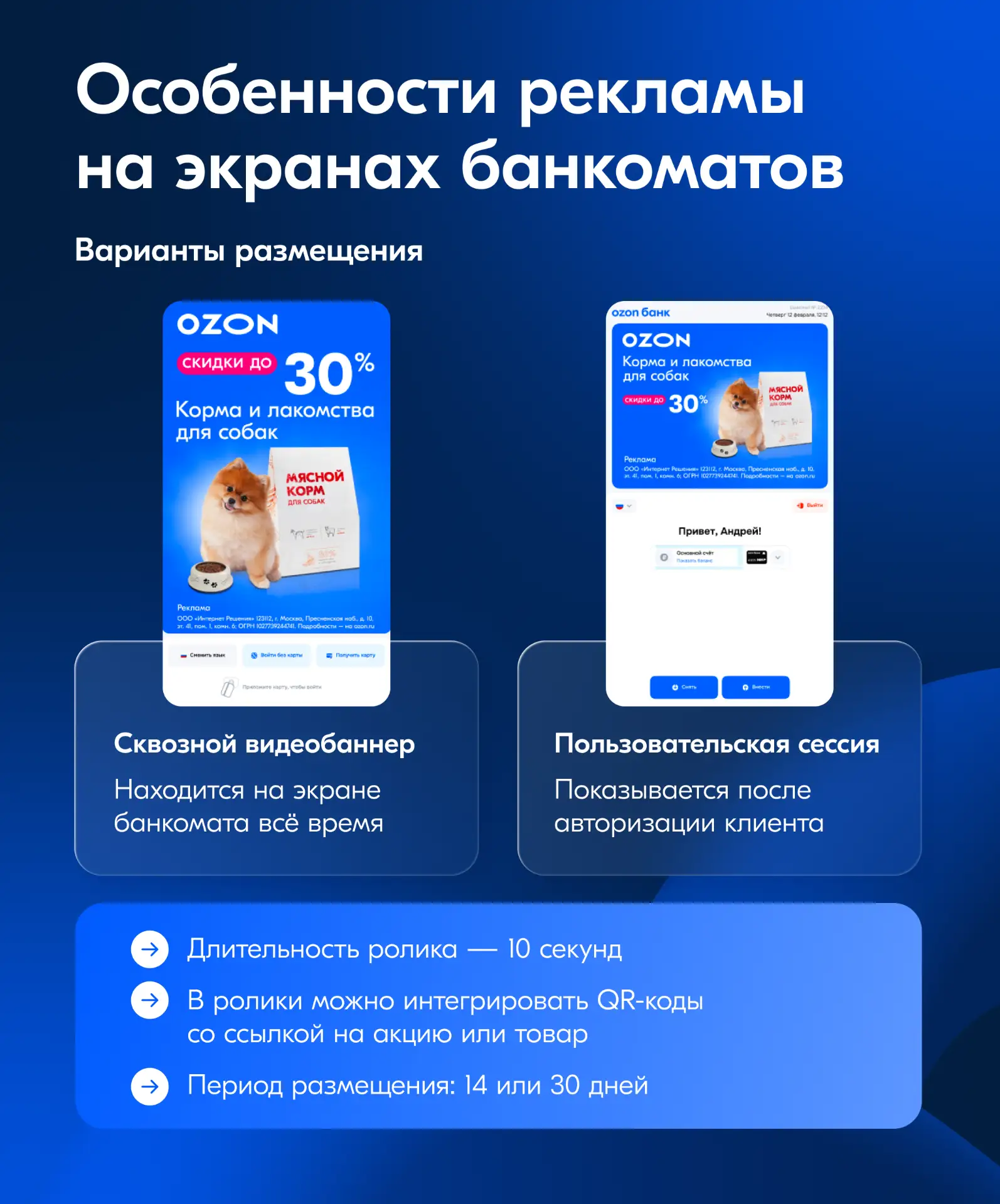 Узнать о рекламе на экранах банкоматов Ozon Банка.
