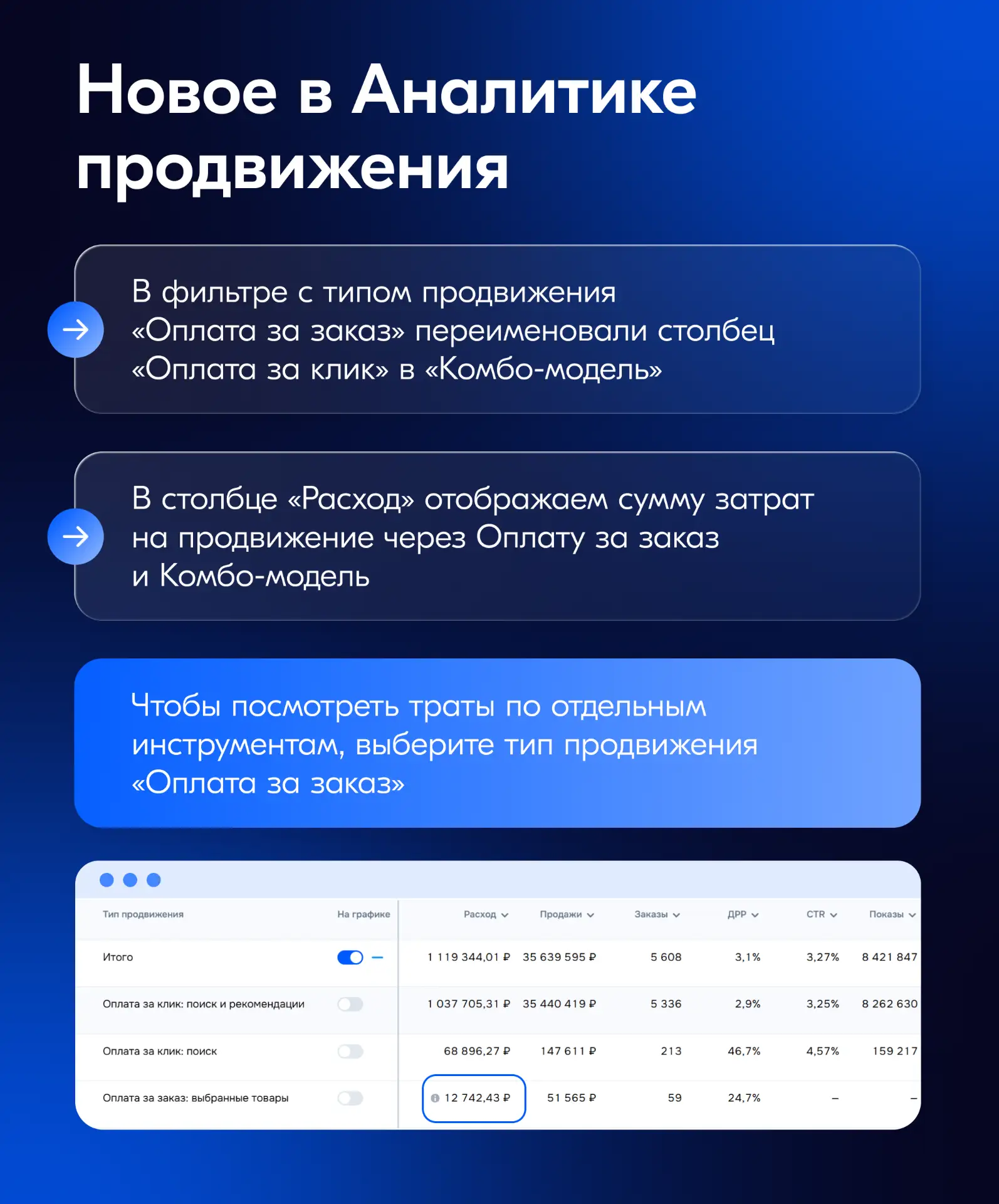 С 18 марта в нём появилось больше данных о продвижении в Оплате за клик и Оплате за заказ.
