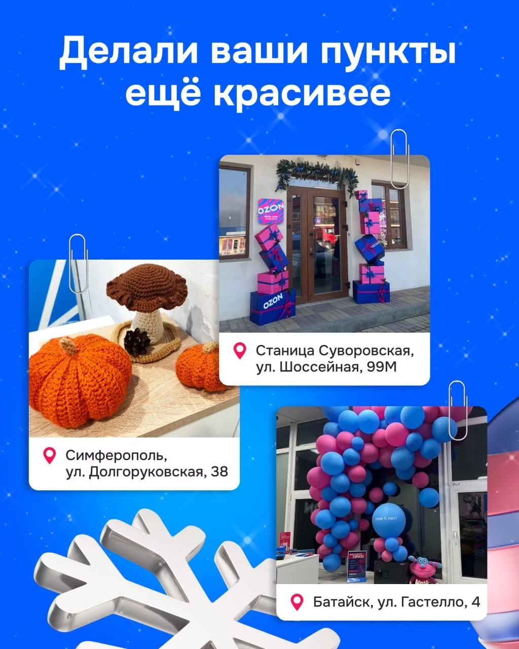 Вы из больших городов и маленьких сёл, вам 25 и 55, кто-то открыл пункт выдачи вчера, а кто-то развивает свою сеть уже много лет. Но всех объединяет одно: вы решились начать. И вместе с вами е-ком в России растёт и развивается, а жизнь миллионов людей меняется к лучшему.
