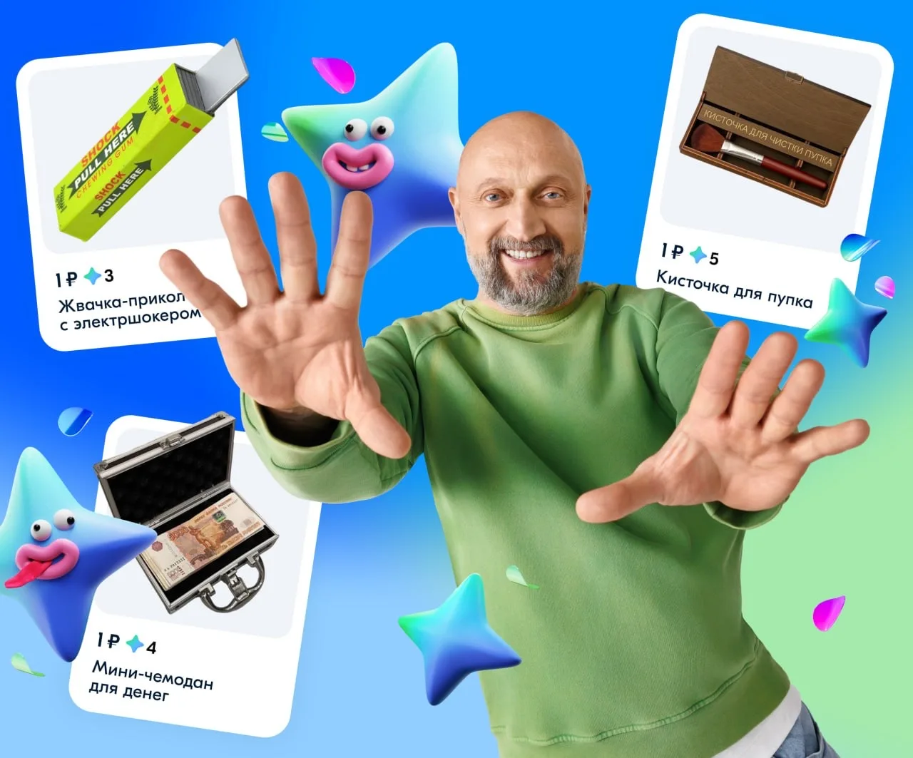 ➡️ Копите за них звёзды и обменивайте на товары за 1 ₽.