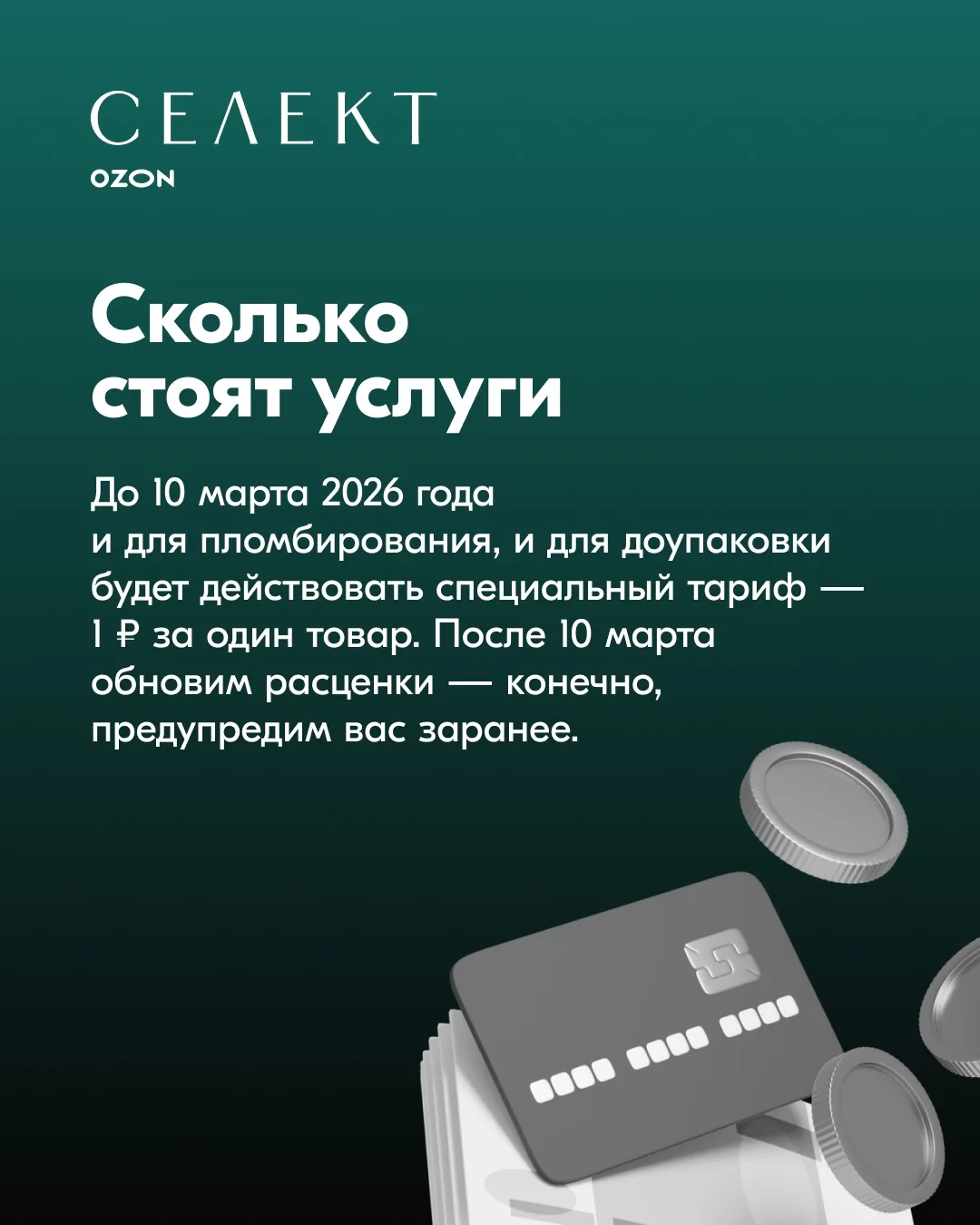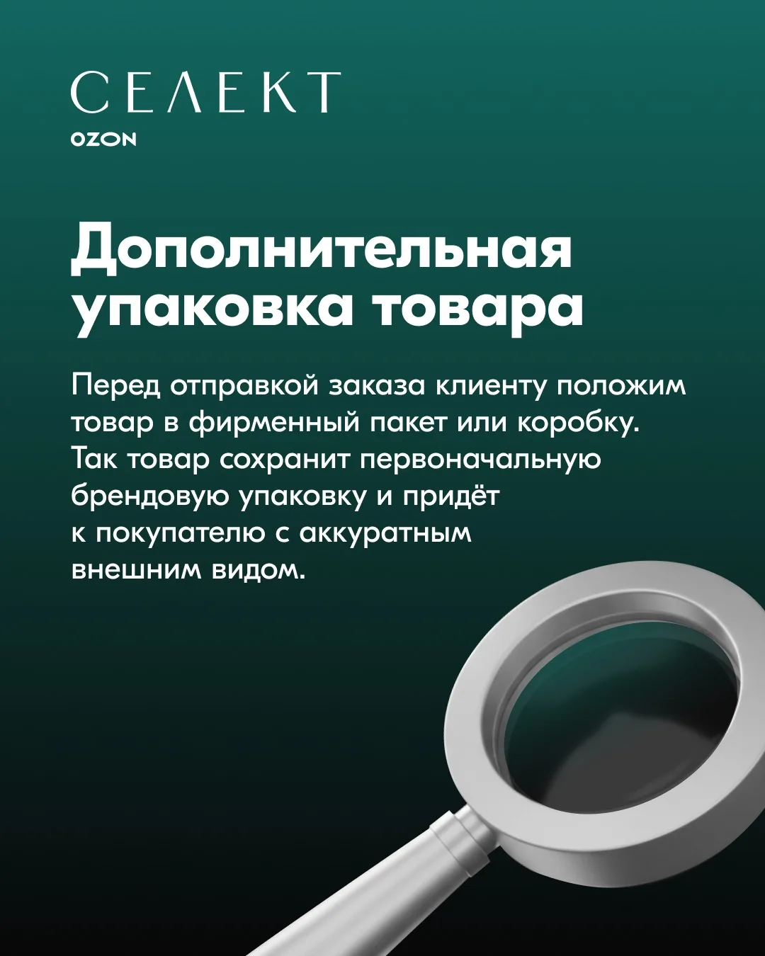 Как уже рассказывали, с 10 февраля для товаров, которые представлены на Ozon Селект, появятся две новые услуги: дополнительная упаковка и пломбирование товара. Все подробности о них — в карточках ↑