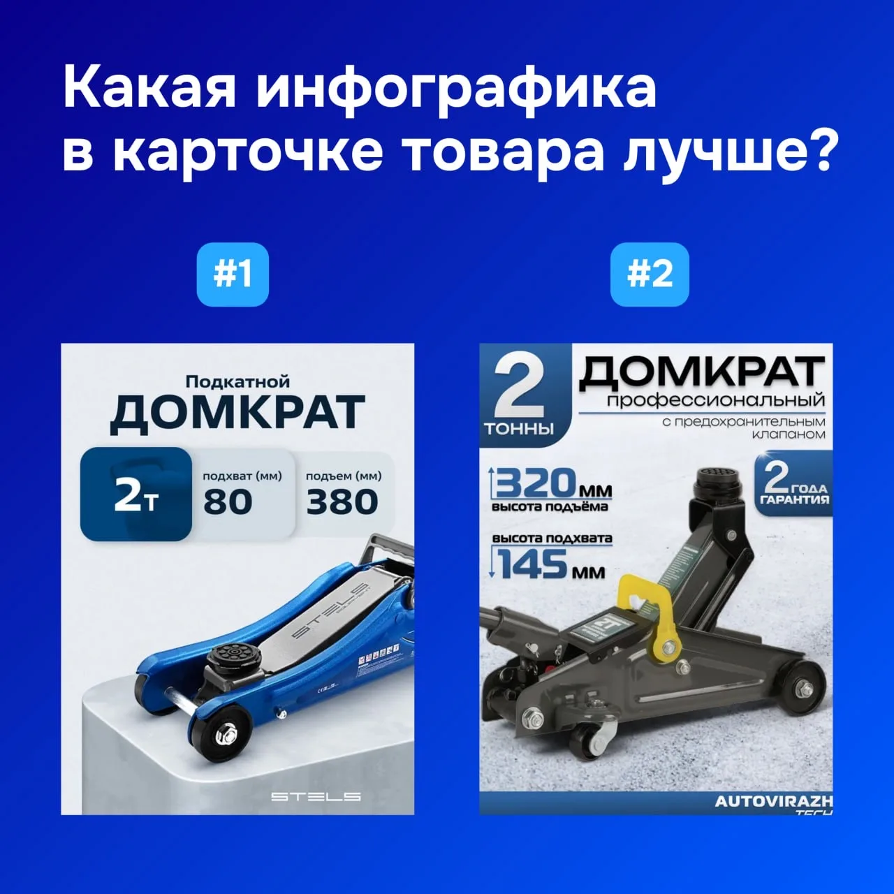 UPD. Правильный ответ — инфографика №1. Она акцентирует внимание на товаре, характеристики вынесены коротко и понятно. Инфографика №2 перегружено лишней информацией и дополнительными картинками.