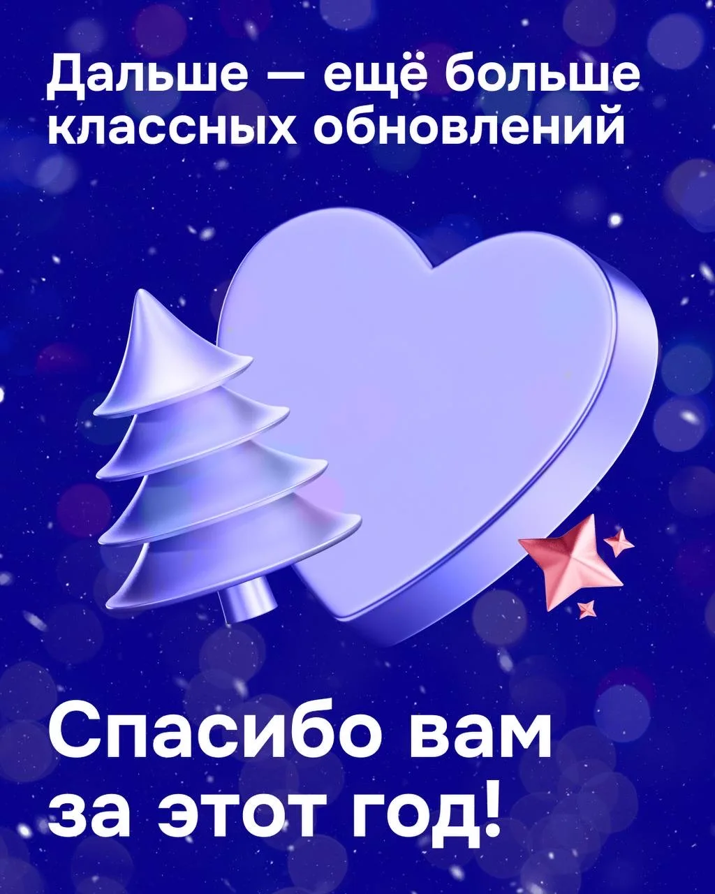 В уходящем году вы росли, рисковали и искали новые идеи. Вы вкладывали в свою работу не только время, но и душу — и именно поэтому вам доверяют миллионы клиентов. Спасибо вам за этот путь и за то, что вы делаете.