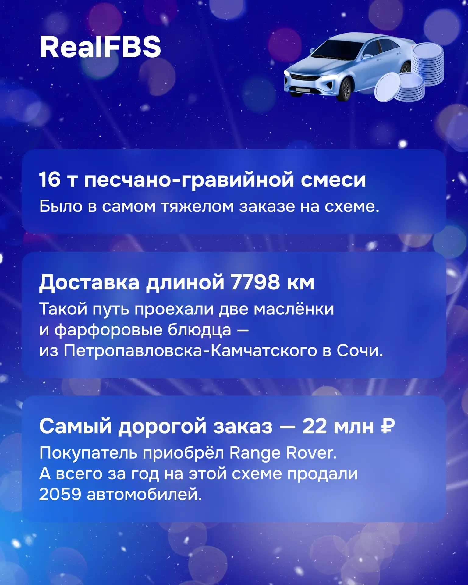 Делимся самыми яркими событиями, которые случились благодаря вам, — от доставки целого дома до рекордных поставок. Собрали все необычные факты в карточках ↑