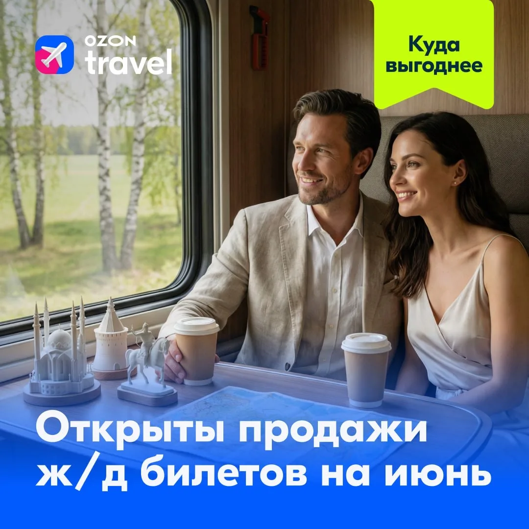 ⭐️И ещё одно важное напоминание. Покупая билеты заранее, вы можете сэкономить до 50% по сравнению с ценой в день отправления. Так что пора выбирать ж/д билеты на Ozon Travel!