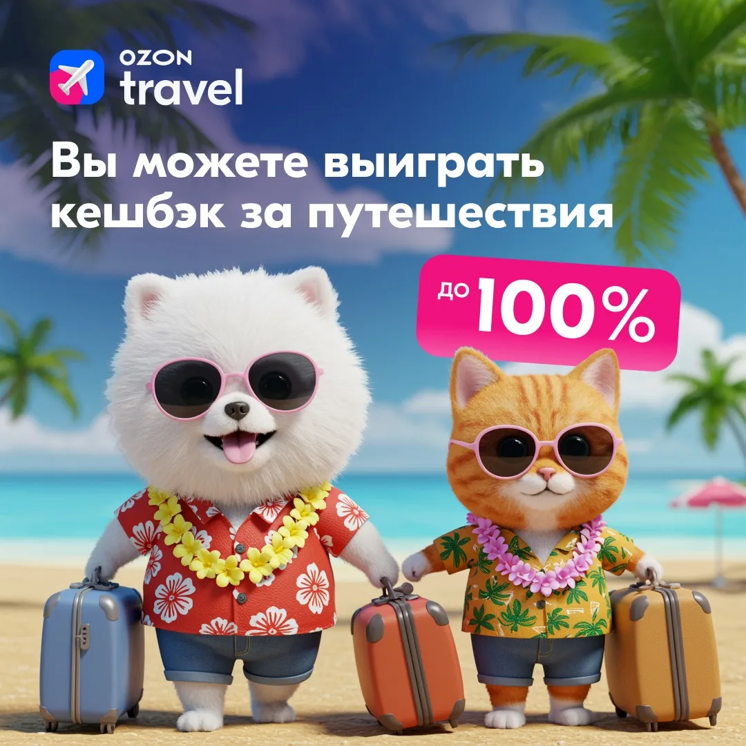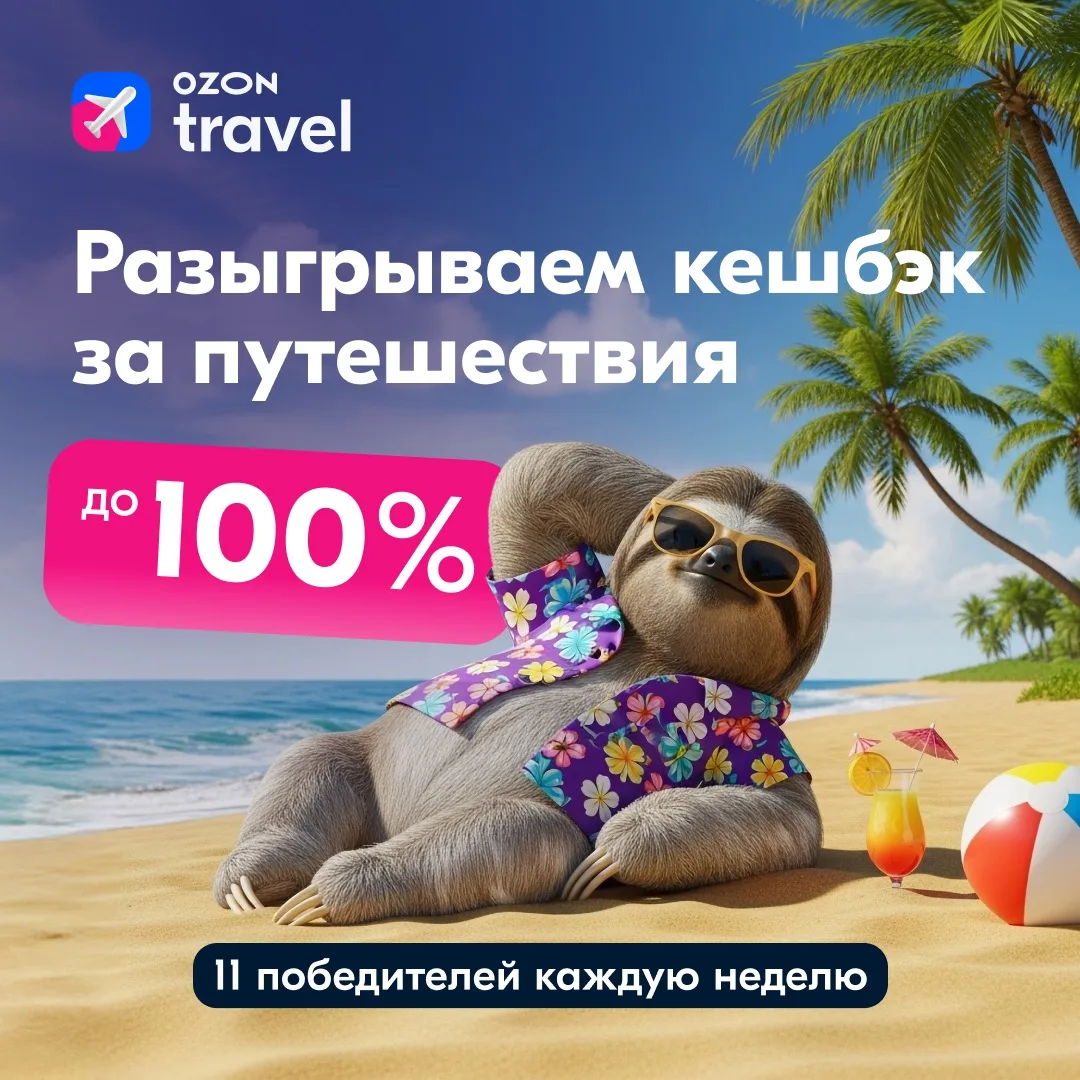 А точнее, кешбэк до 100% за покупку путешествия на Ozon Travel🪄