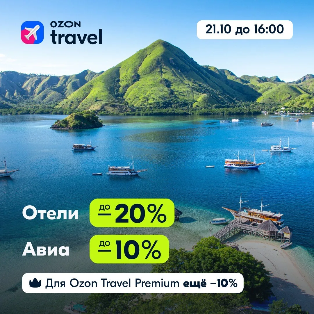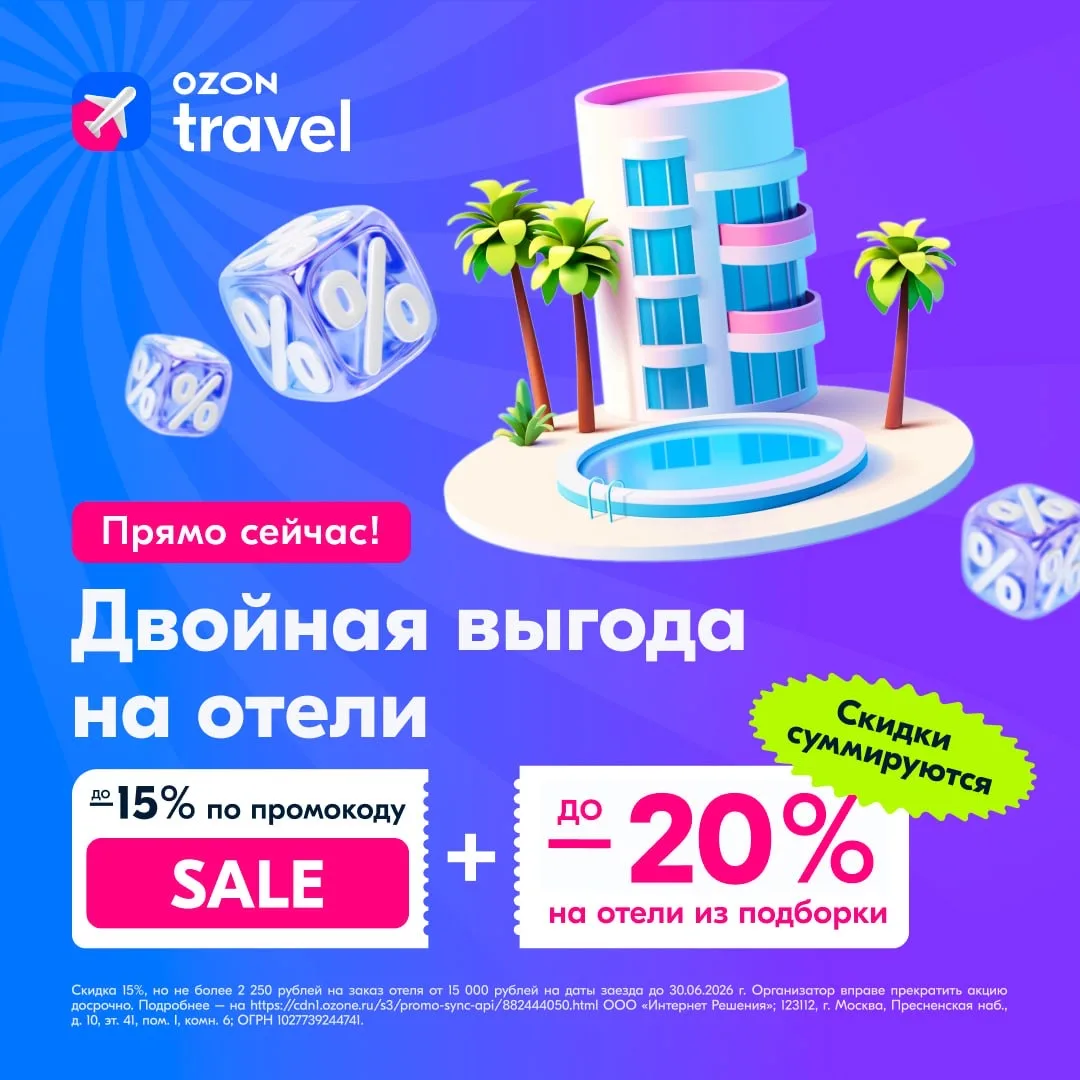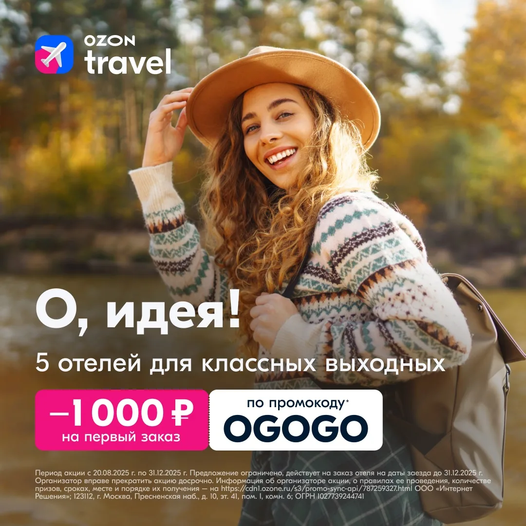 Поэтому следите за новостями Ozon Travel и успевайте сделать поездку ещё приятнее с двойной выгодой!✈️
