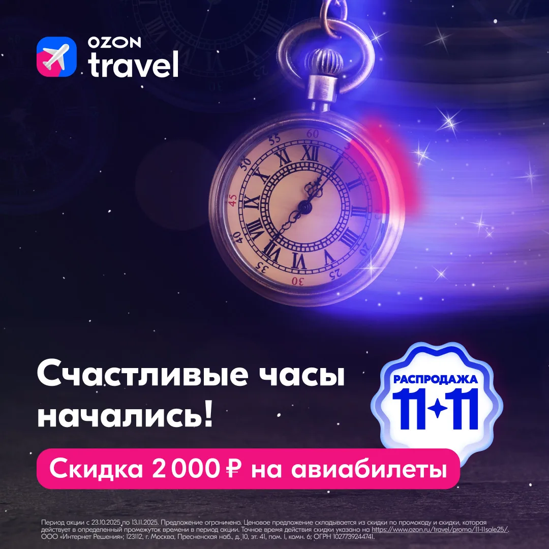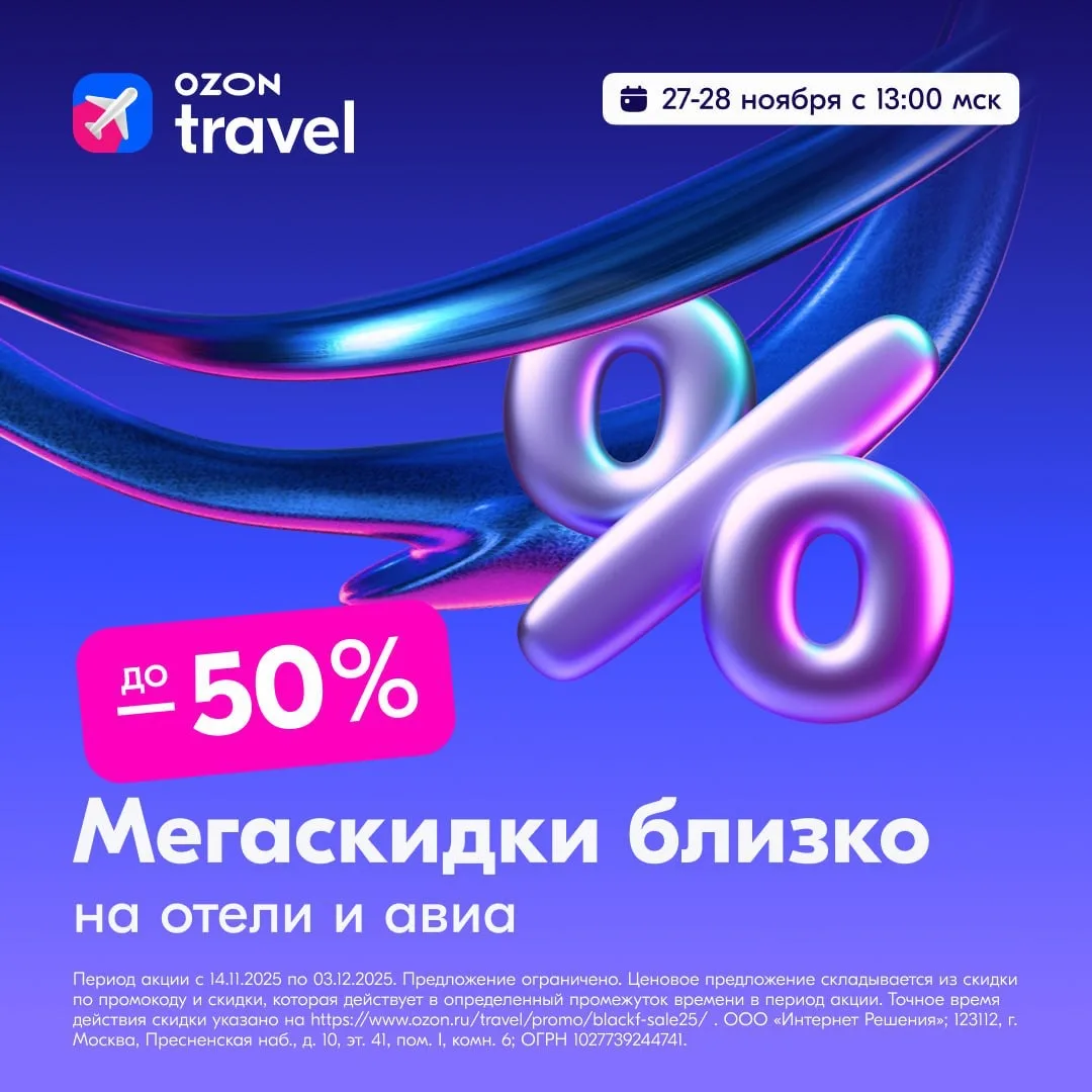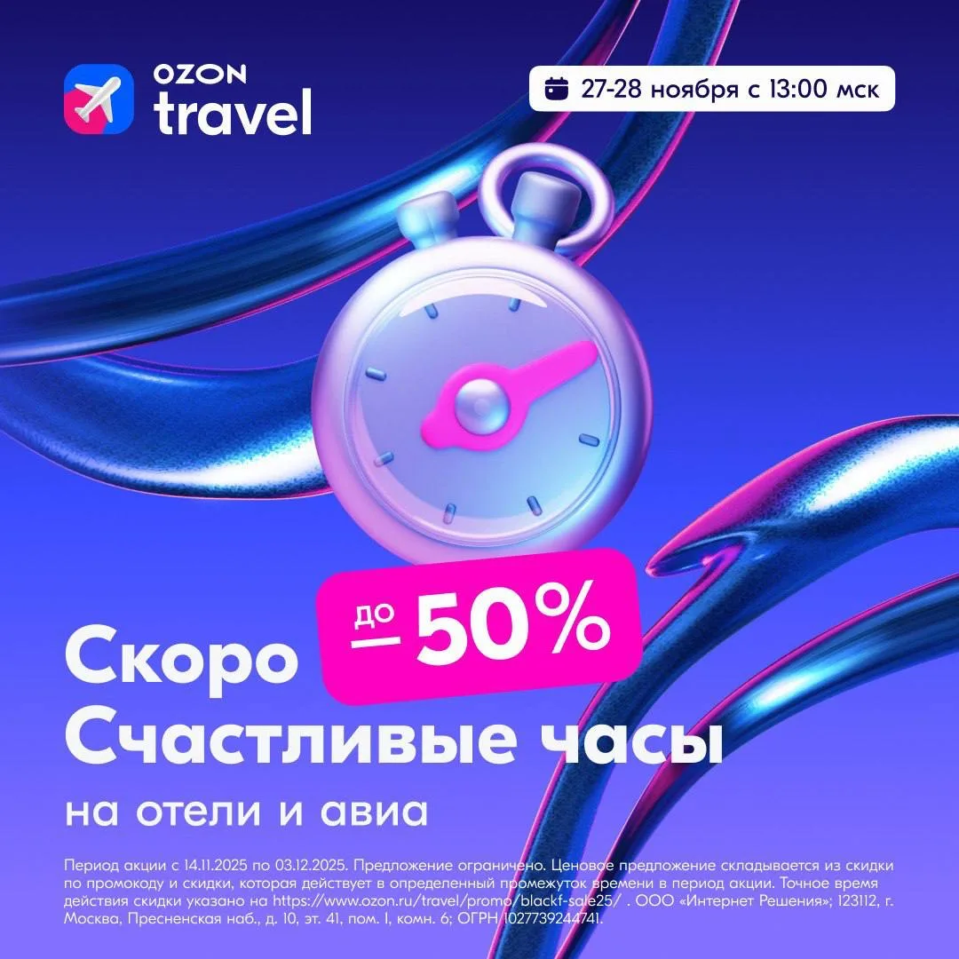 Поэтому следите за новостями Ozon Travel и успевайте сделать поездку ещё приятнее с двойной выгодой!✈️