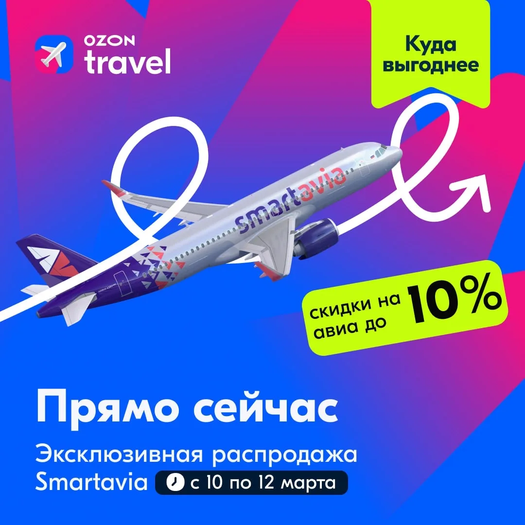 🔥На Ozon Travel началась эксклюзивная распродажа Smartavia со скидками до 10%