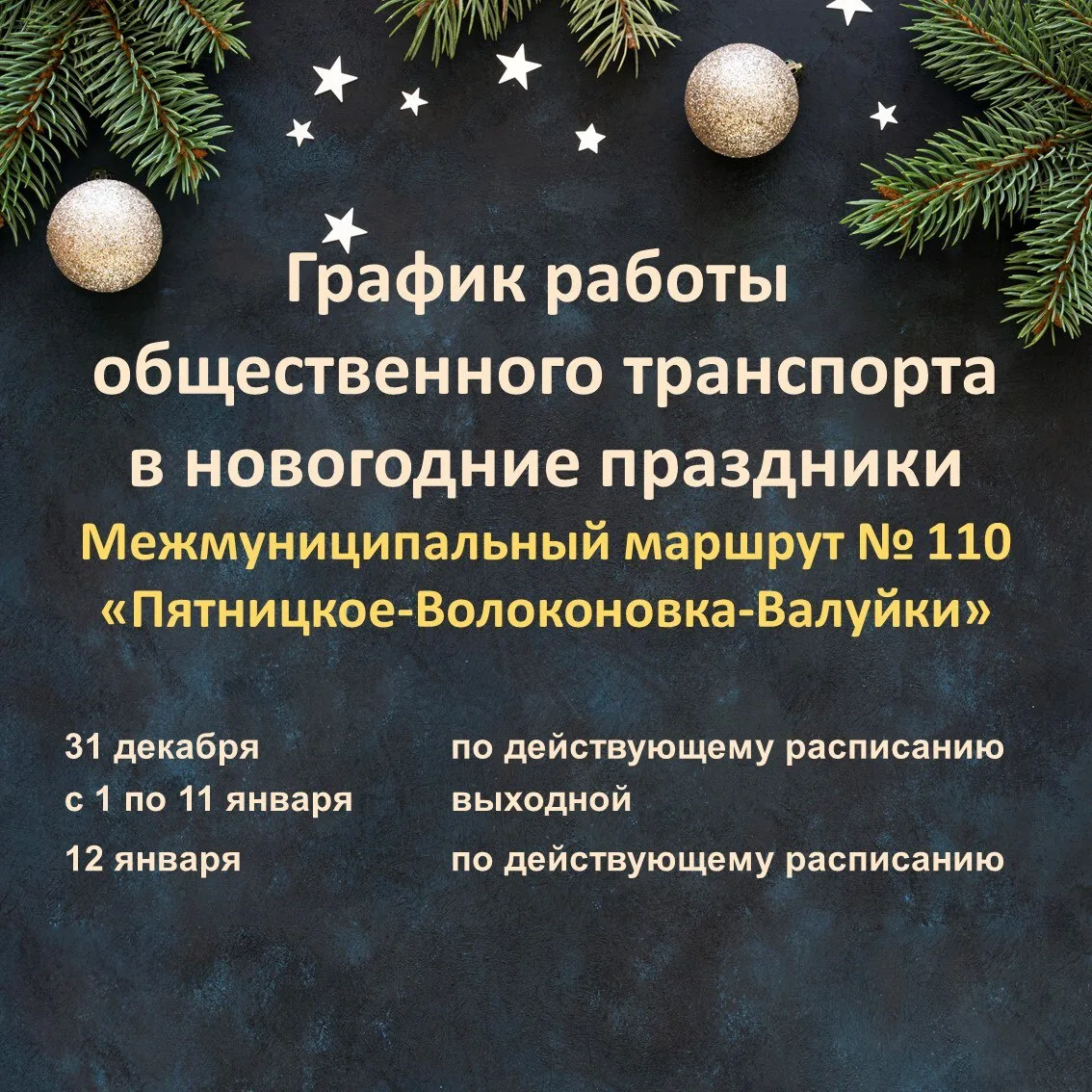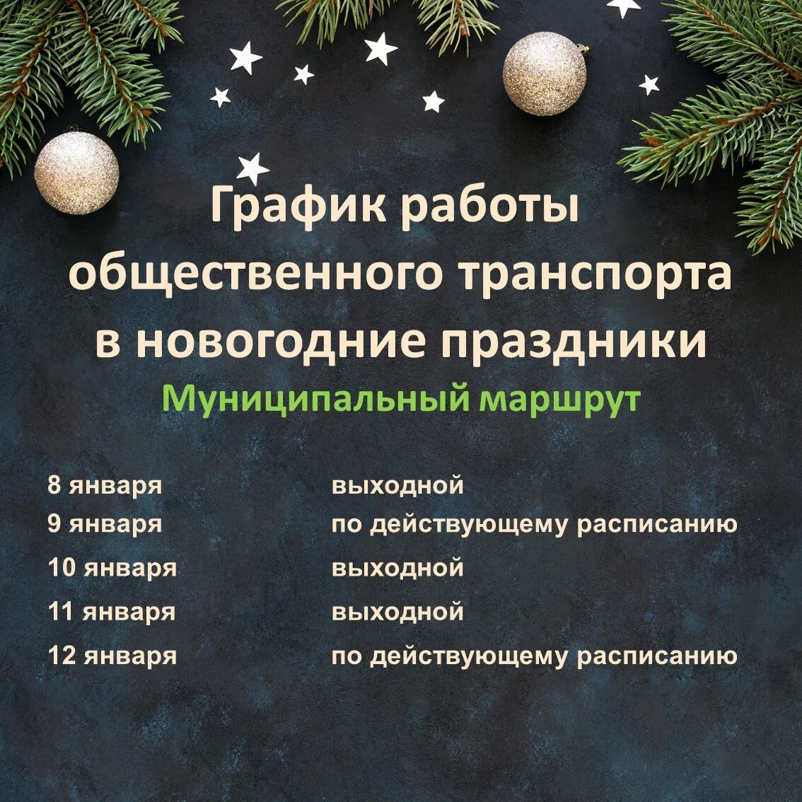 Движение автобусов по маршрутам в дни новогодних каникул будет осуществляться по следующему графику.