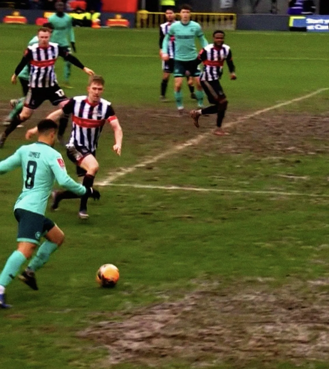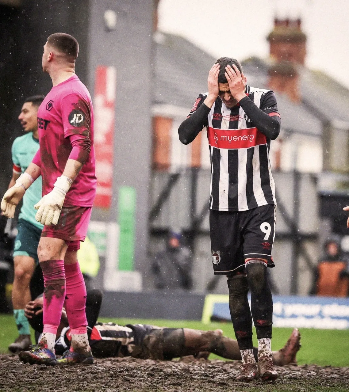 😲 «Гримсби Таун», который сенсационно выбил «Манчестер Юнайтед» из Кубка Англии, сегодня принимал «Вулверхэмптон» на домашнем поле, которое выглядело так, как будто футбол придумали вчера - игроки все измазались в грязи, а мяч застревал и тонул в лужах.