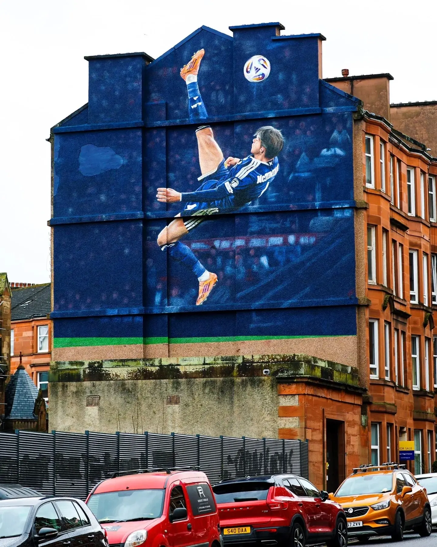 Скотт Мактоминей приехал, чтобы лично заценить мурал в честь своего крутейшего гола через себя в ворота Дании, который помог Шотландии выйти на первый за 28 лет Чемпионат Мира по футболу.