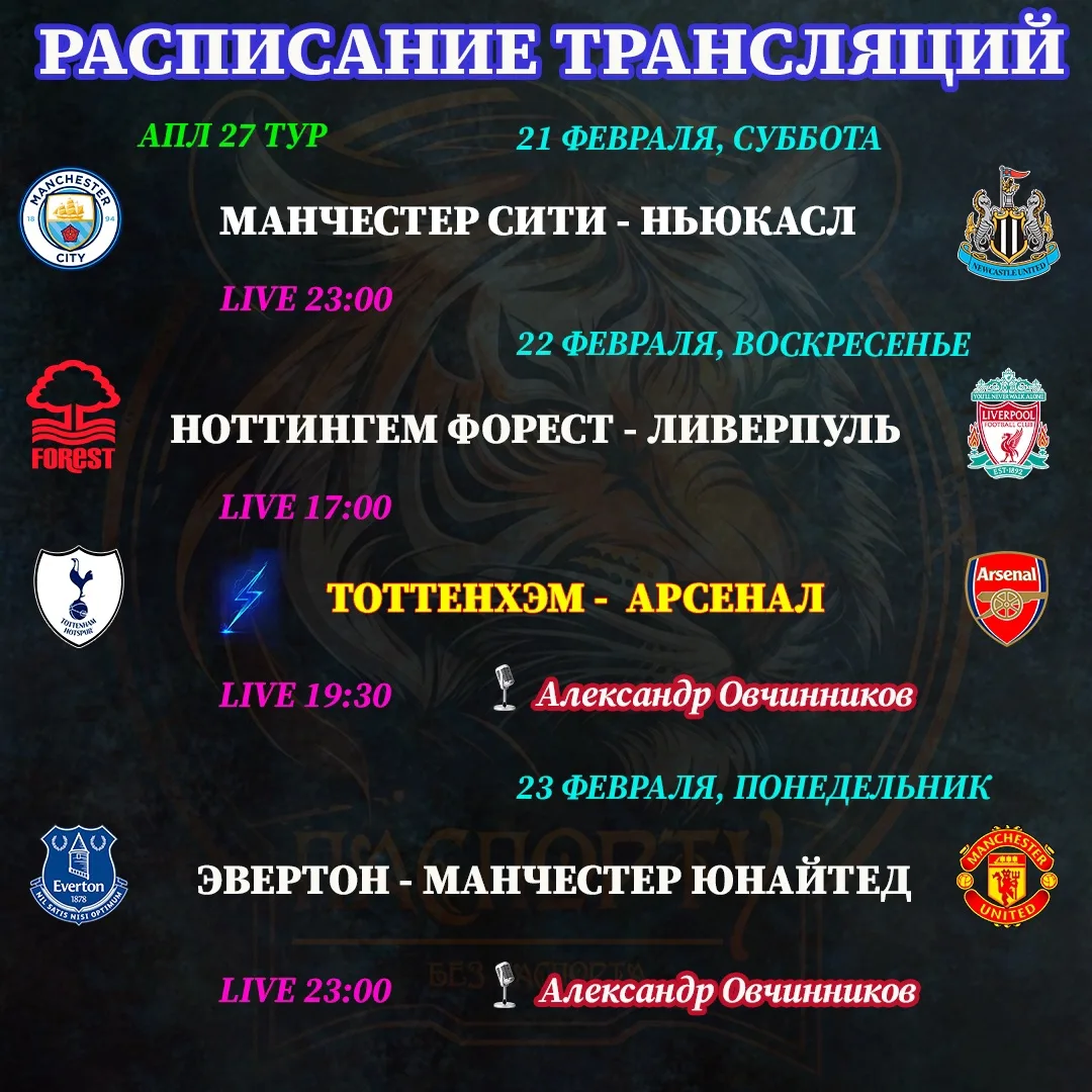 🗓️ Ловите новое расписание и жду вас на просмотр самых ярких матчей АПЛ!