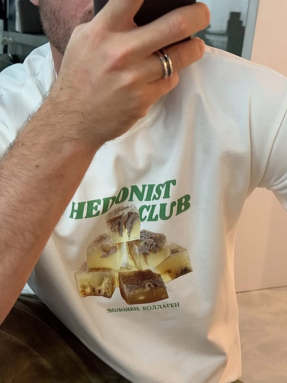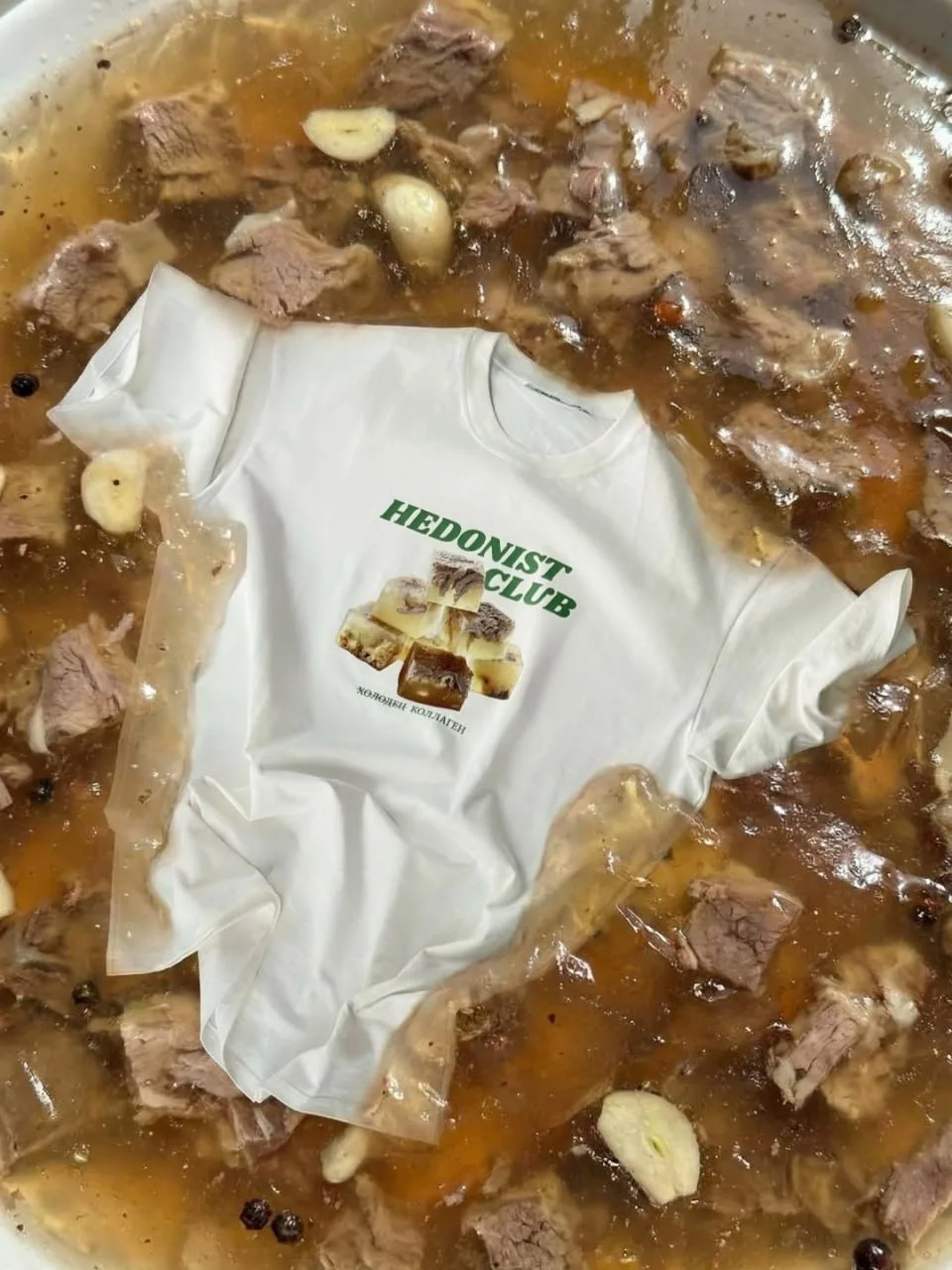 Российский бренд Proséka выпустил новогодние футболки, вдохновленные самыми узнаваемыми героями праздничного стола. На принтах — щедрый бутерброд с красной икрой и холодец, без которых многие даже не представляют себе новогоднюю ночь. Цена — 4600 рублей. Прямо как полкило настоящей икры.