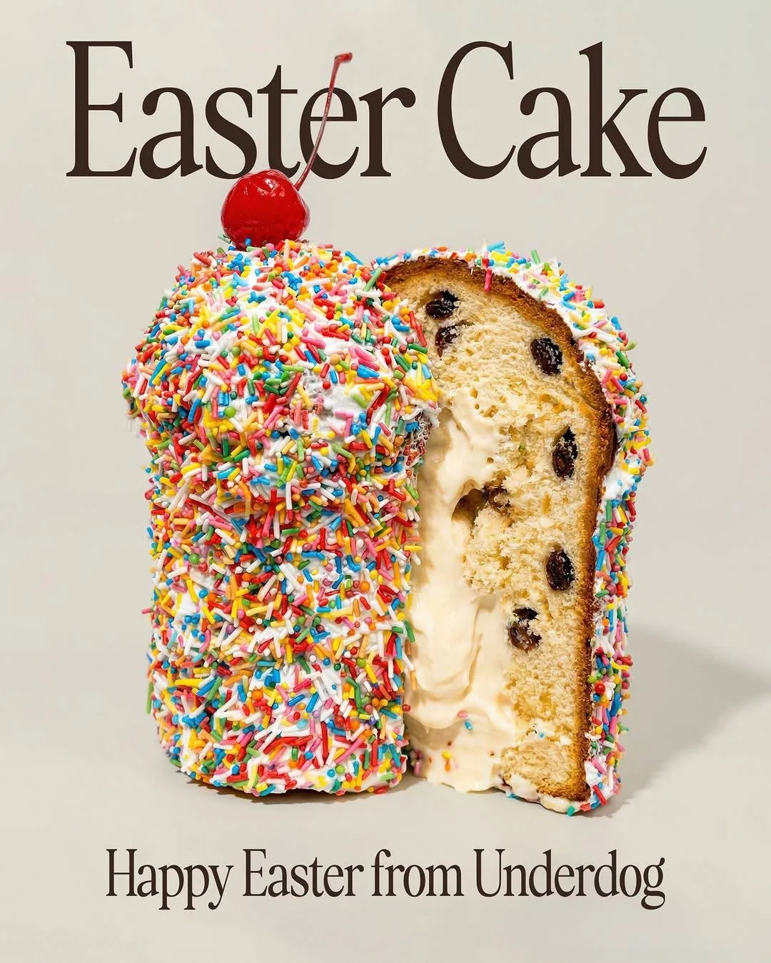 Московский бар Underdog выпустил собственную версию праздничного кулича с ванильным кремом, ромовым изюмом и вишенкой сверху, но главная фишка десерта — он весь покрыт шапочкой.