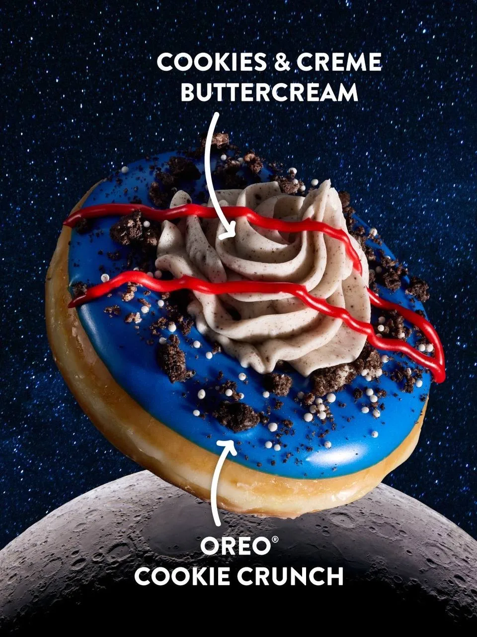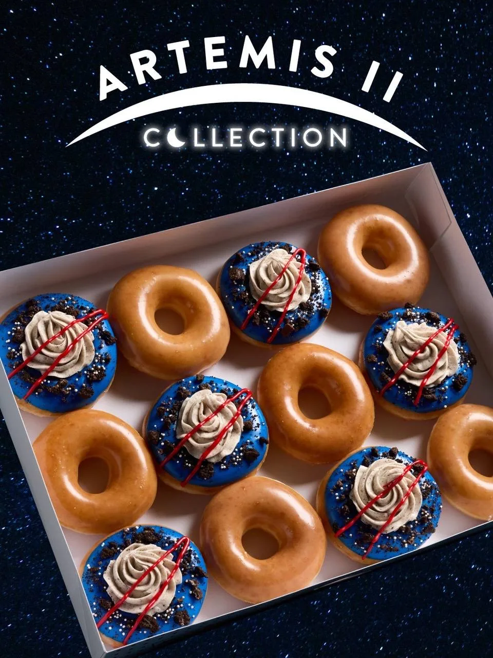 Krispy Kreme угорел по миссии «Артемида-2» и выпустил тематические пончики, увековечивающие в тесте первый за полвека пилотируемый полет к Луне. В составе новинки — глазурь космических цветов, крем и крошка печенья.