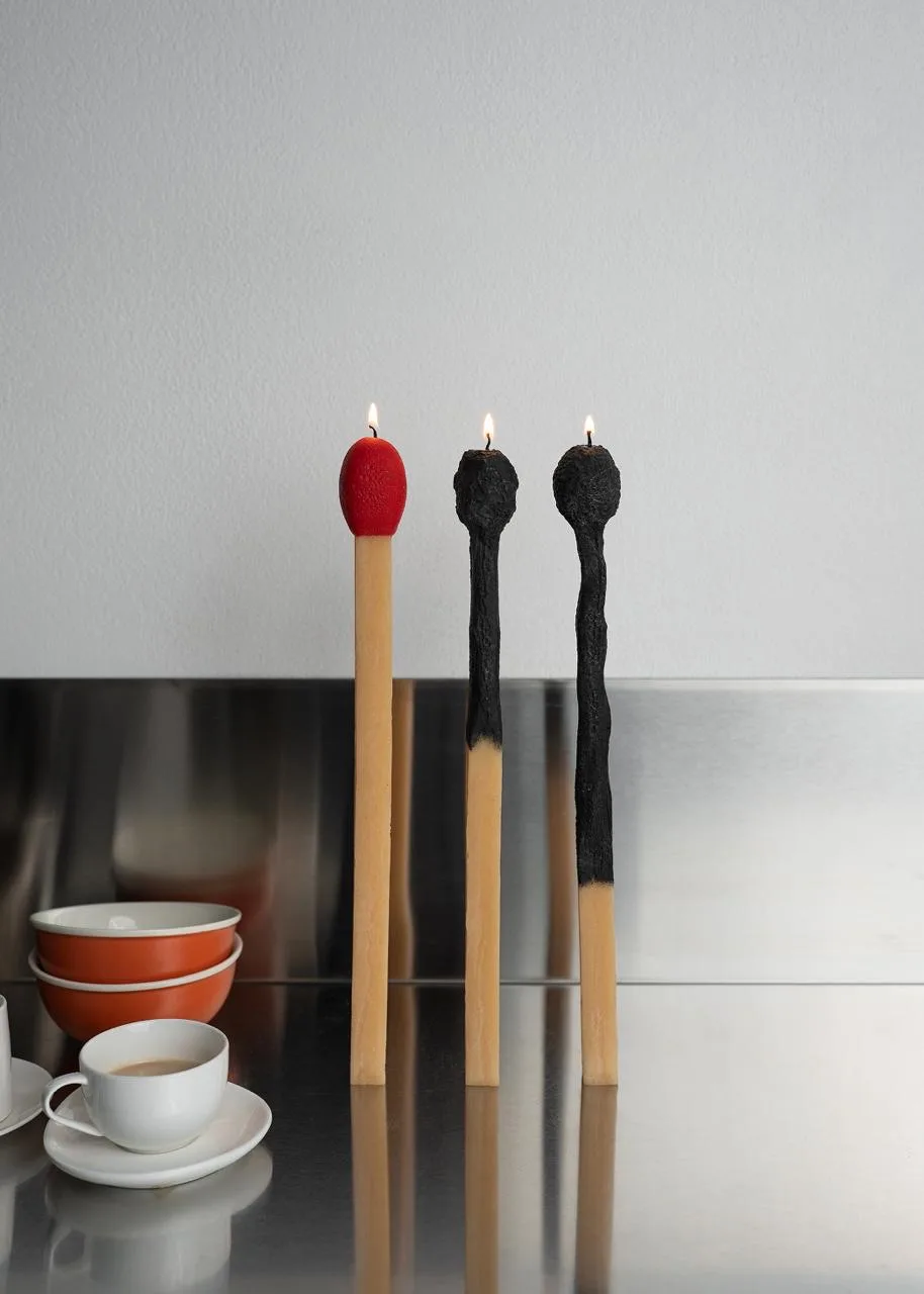 Российский дизайнер делает свечи в форме гигантских спичек. Автор говорит, что это не просто прикол такой, а полноценный арт-объект, который наталкивает на размышления и предлагает увидеть привычные всем вещи в новом амплуа. Цена арт-объекта — 12 000 рублей за набор из трех штук.